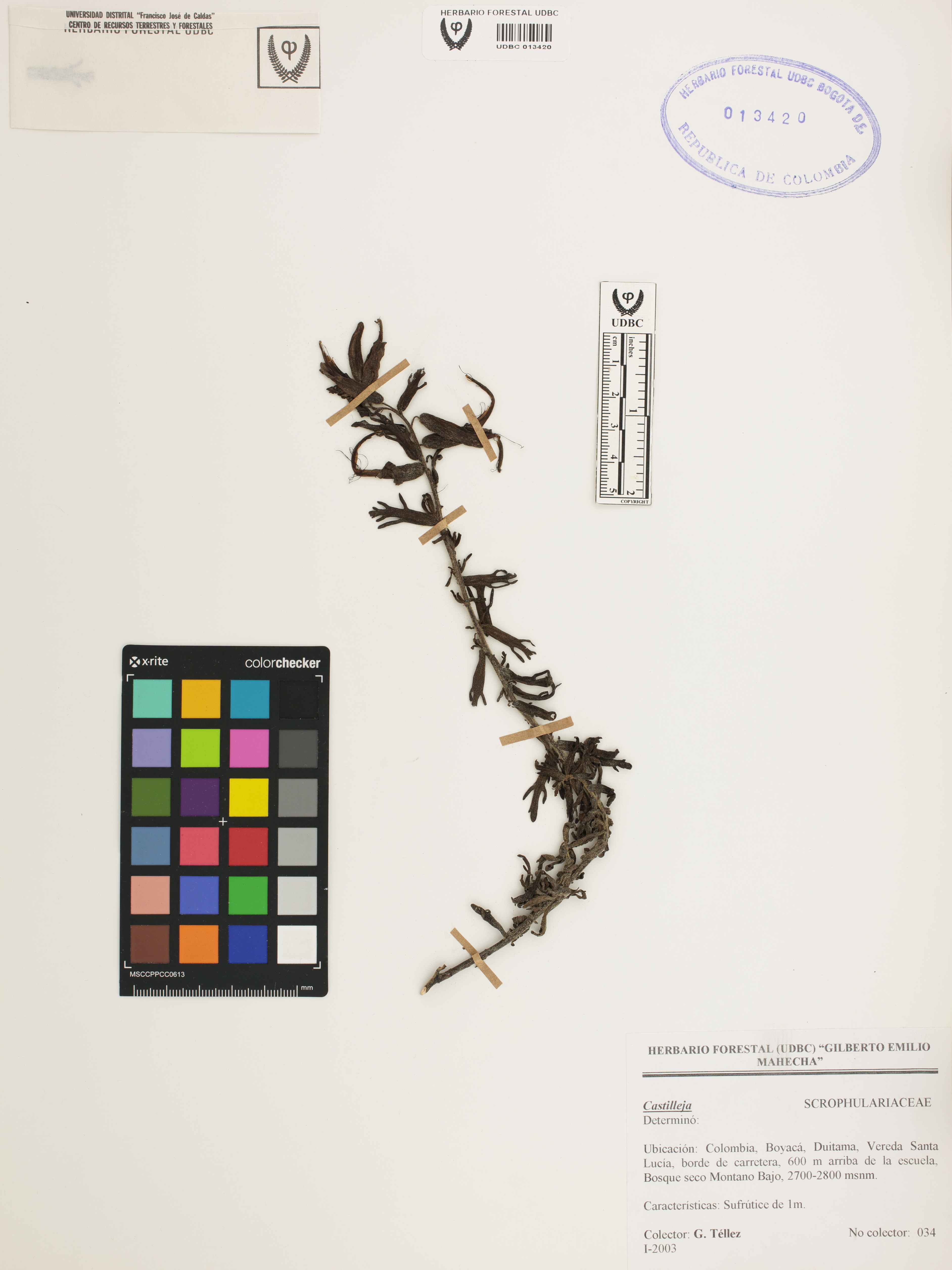 Fotografía del ejemplar Téllez, G. 34, determinado como Castilleja sp.