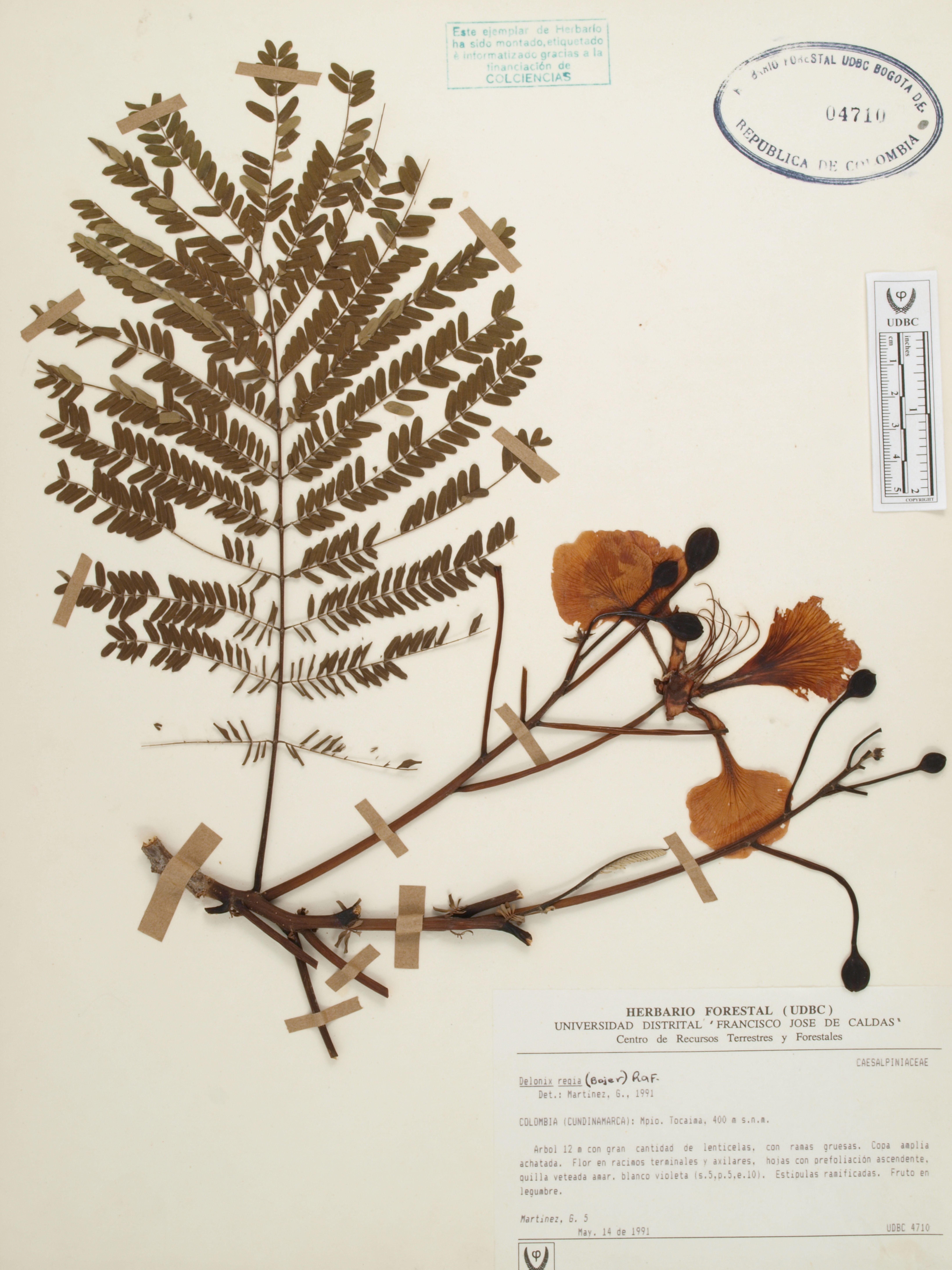 Fotografía del ejemplar SD, determinado como Delonix regia en el año 1991