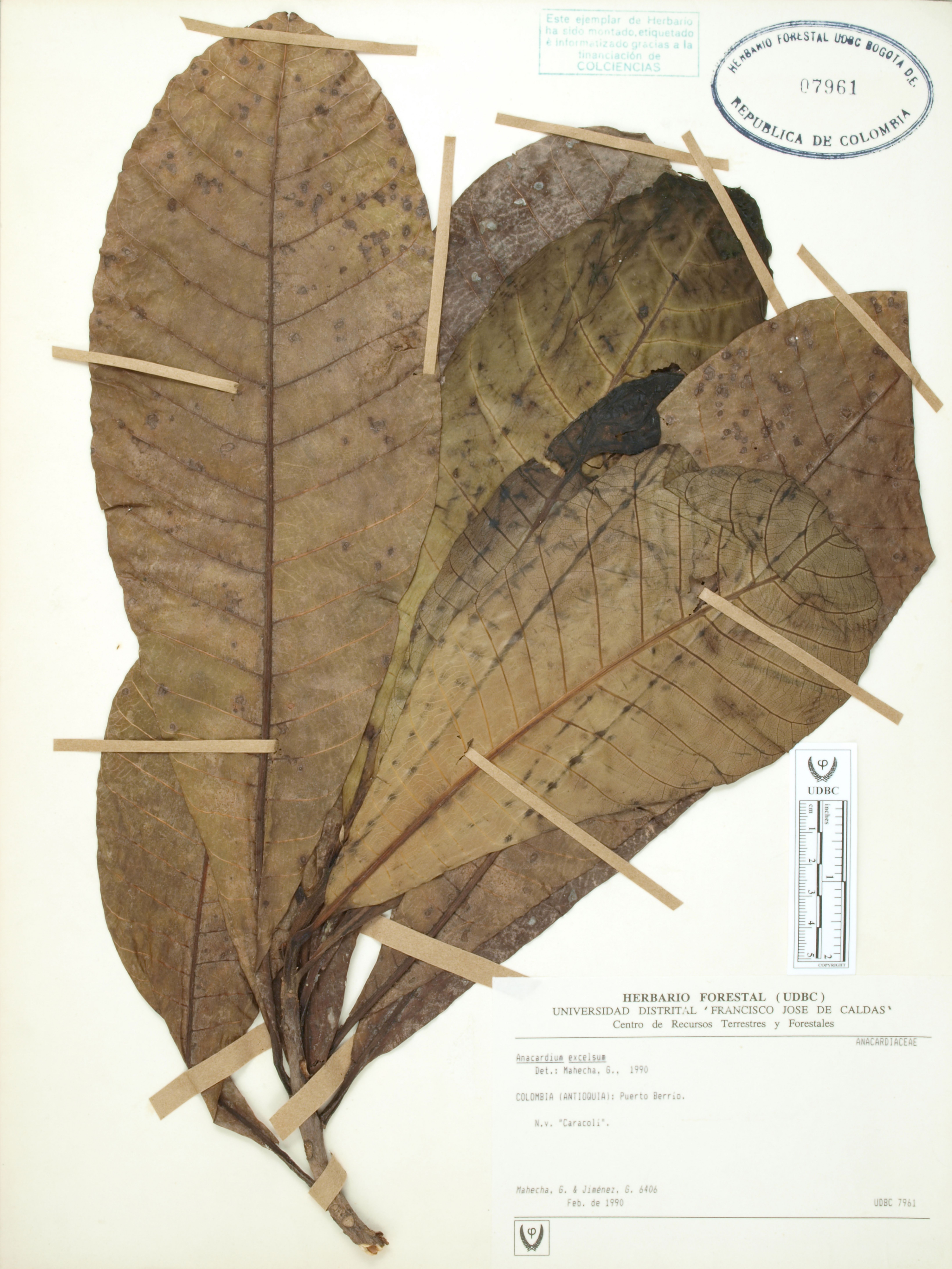 Fotografía del ejemplar Mahecha, G. 6406, determinado como Anacardium excelsum