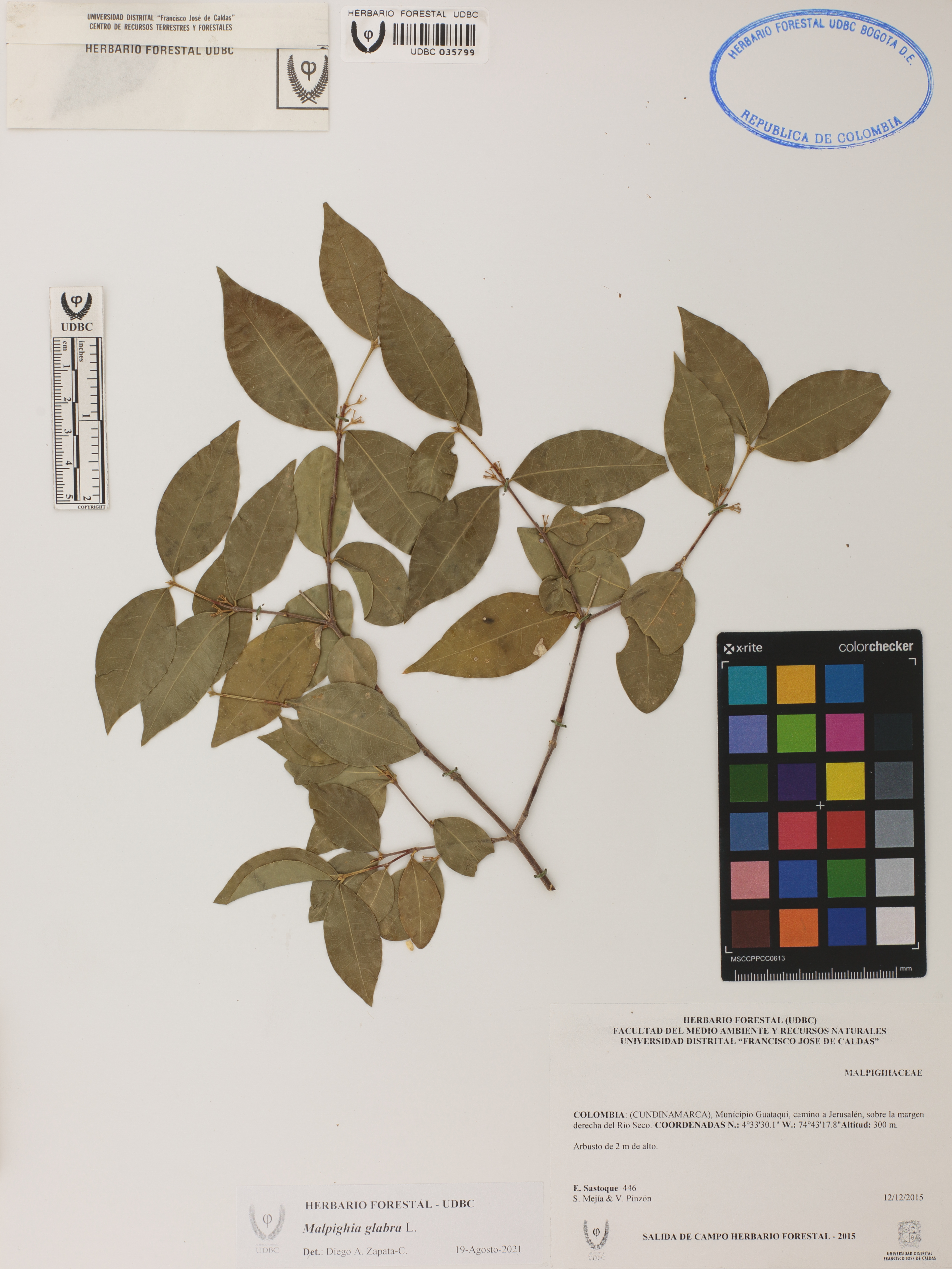 Fotografía del ejemplar Sastoque, E. 446, determinado como Malpighia glabra en el año 2021
