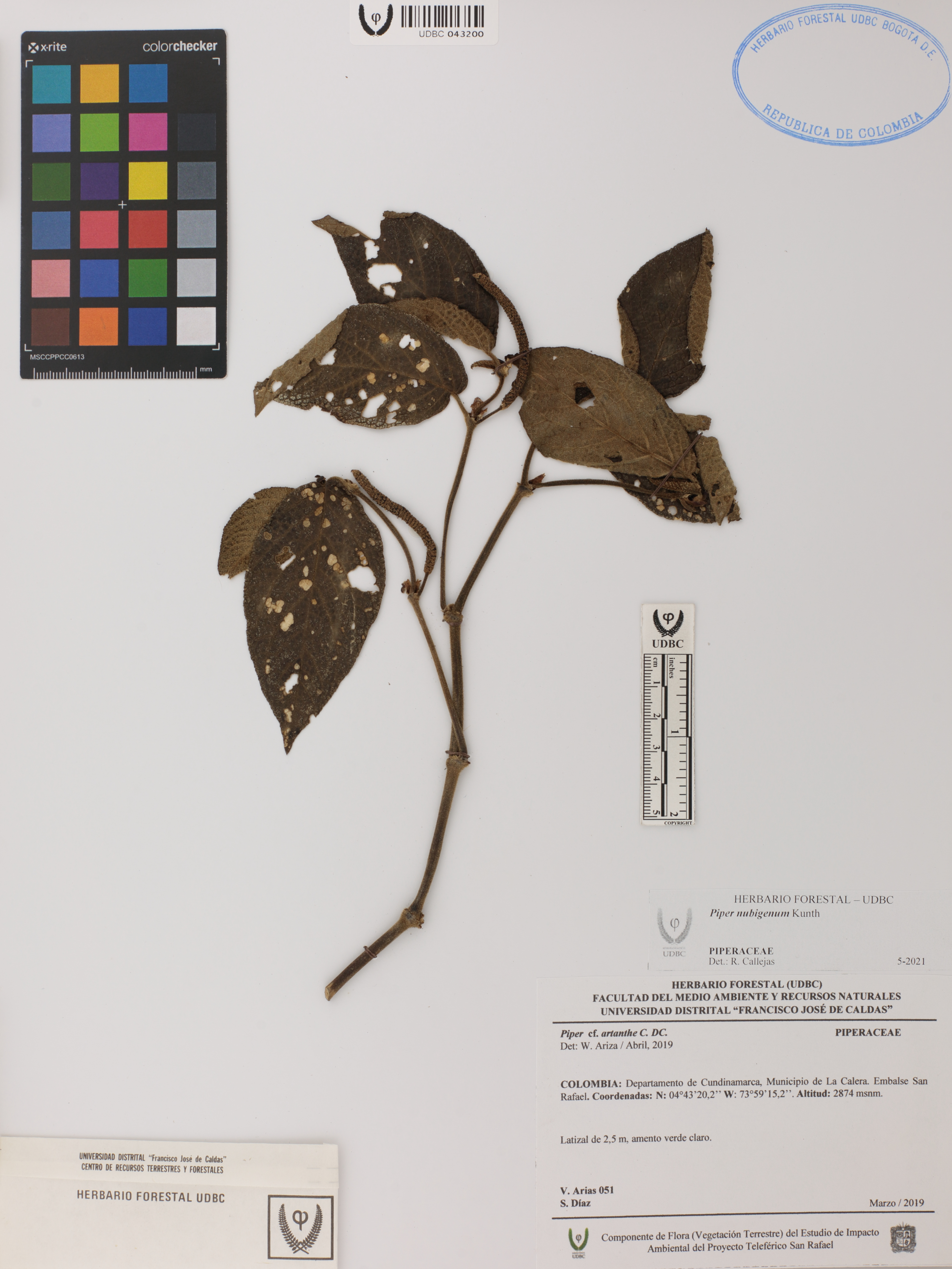 Fotografía del ejemplar Arias, V. 51, determinado como Piper nubigenum en el año 2021
