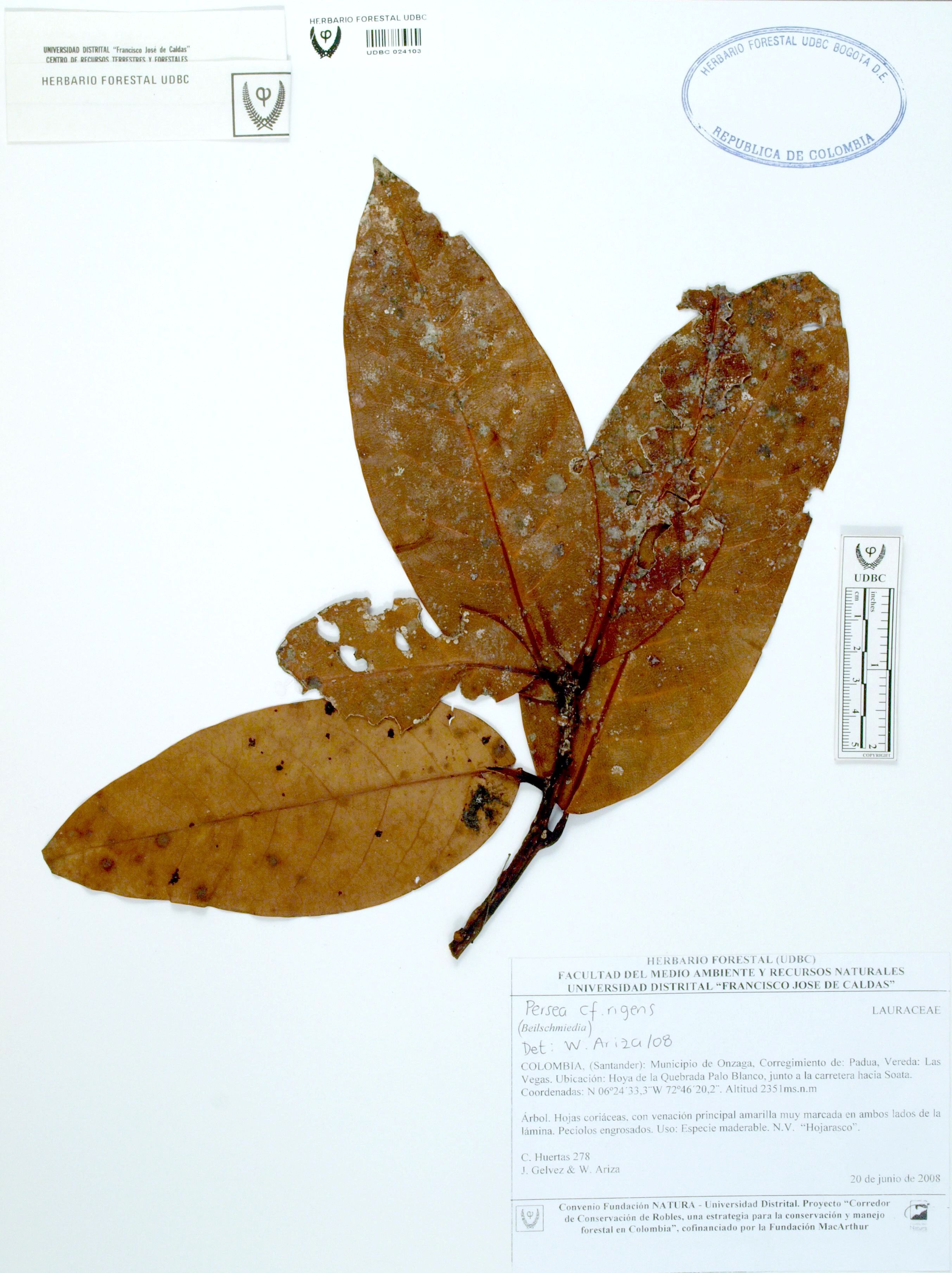 Fotografía del ejemplar Huertas, C. 278, determinado como Persea rigens en el año 2008