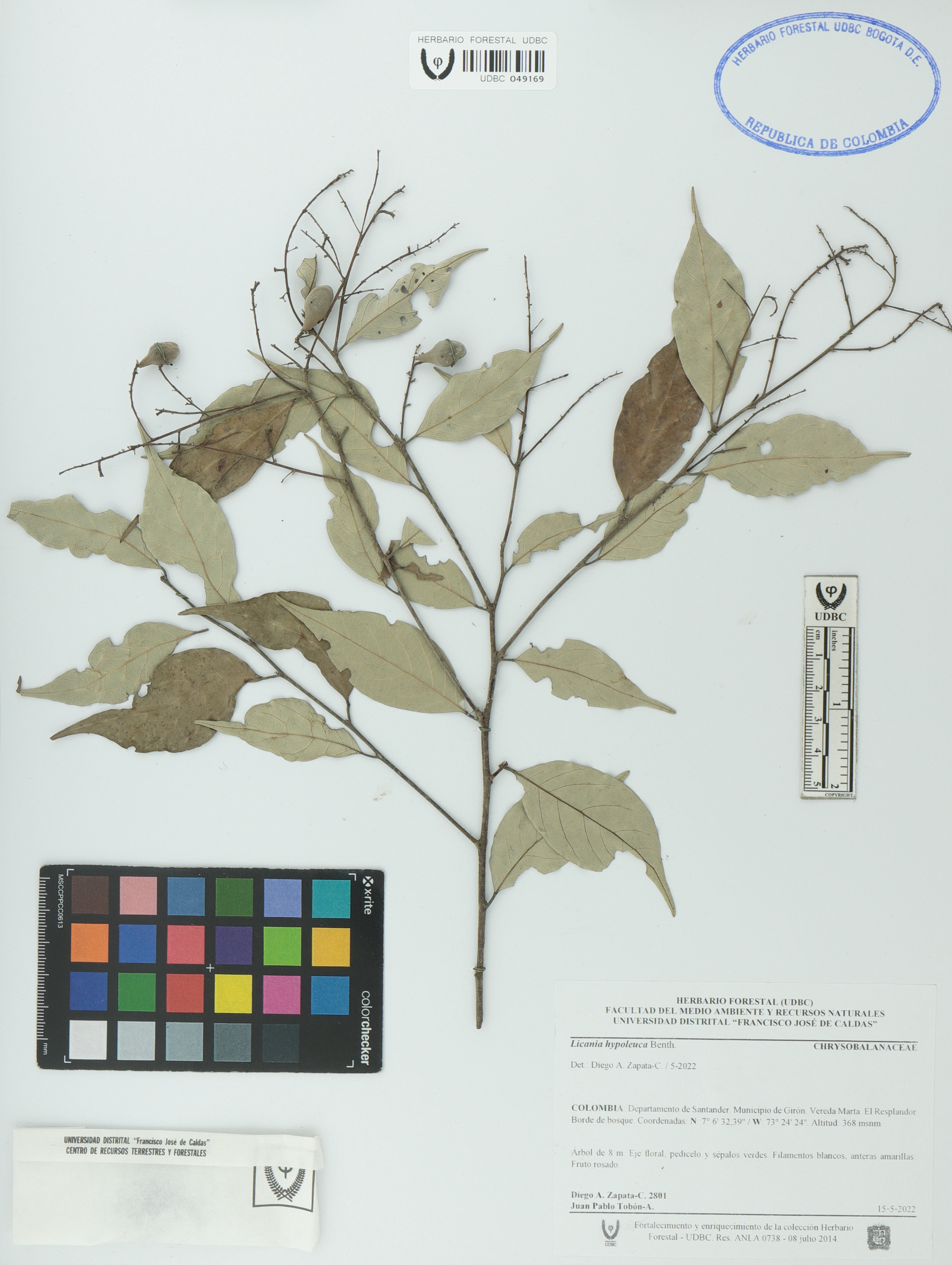 | dc.description | Fotografía del ejemplar Zapata-C., D. 2801, determinado como Licania hypoleuca en el año 2022 | |