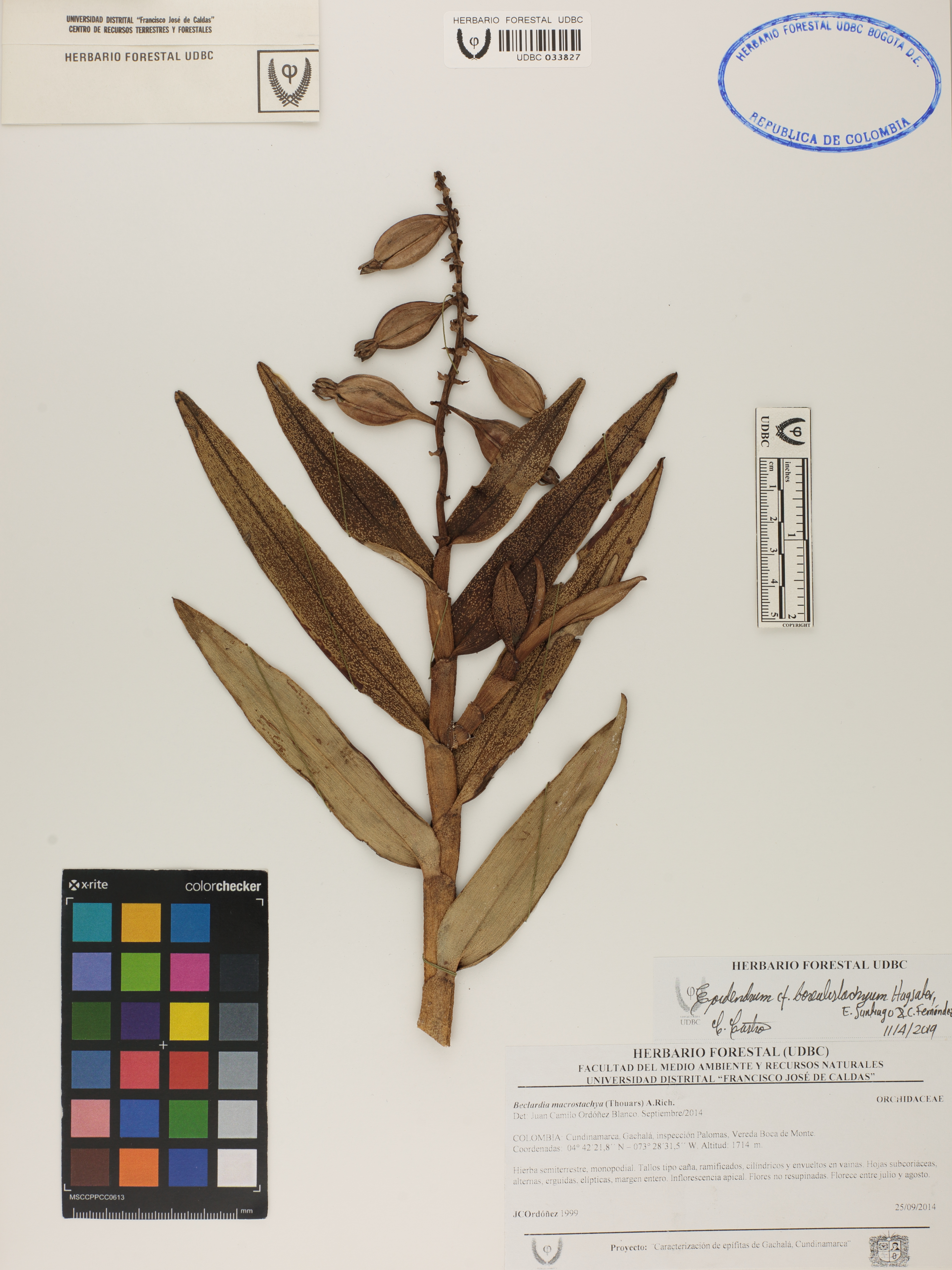Fotografía del ejemplar Ordóñez, J. 1999, determinado como Epidendrum borealistachyum en el año 2019
