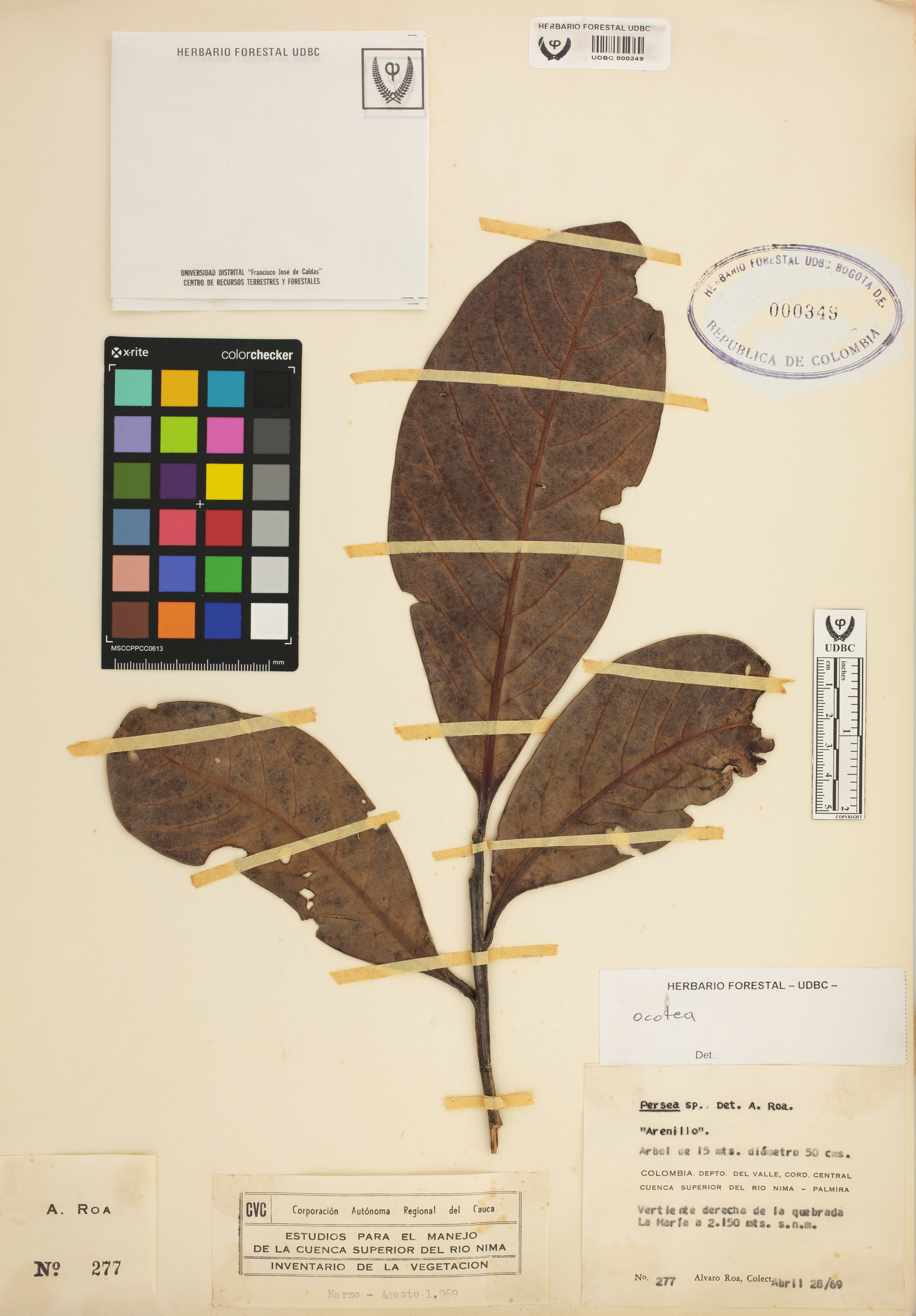 Fotografía del ejemplar Roa, A. 277, determinado como Ocotea sp.