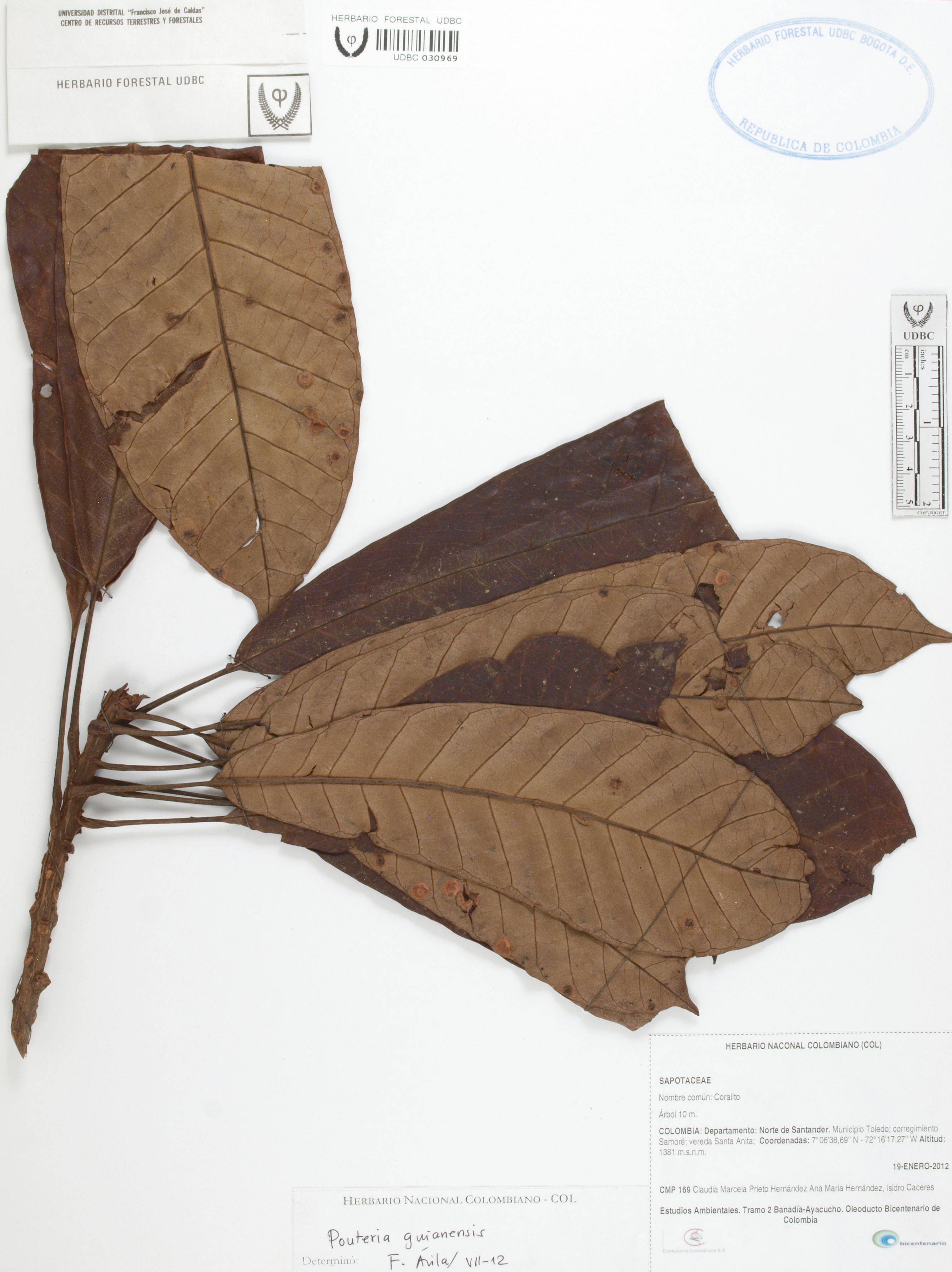 | dc.description | Fotografía del ejemplar Prieto, C. 169, determinado como Pouteria guianensis en el año 2012 | |