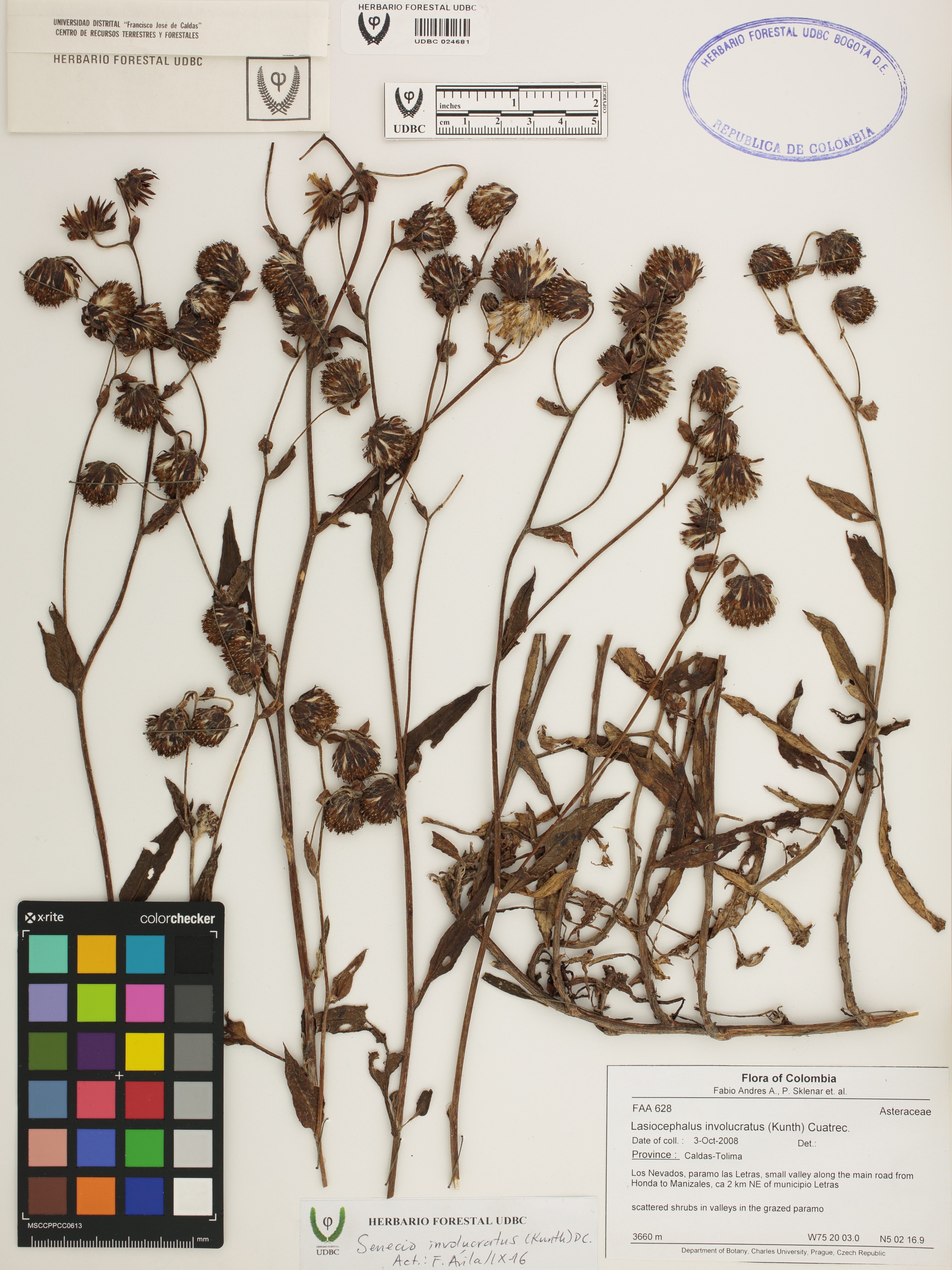 Fotografía del ejemplar Ávila, F. 628, determinado como Senecio involucratus