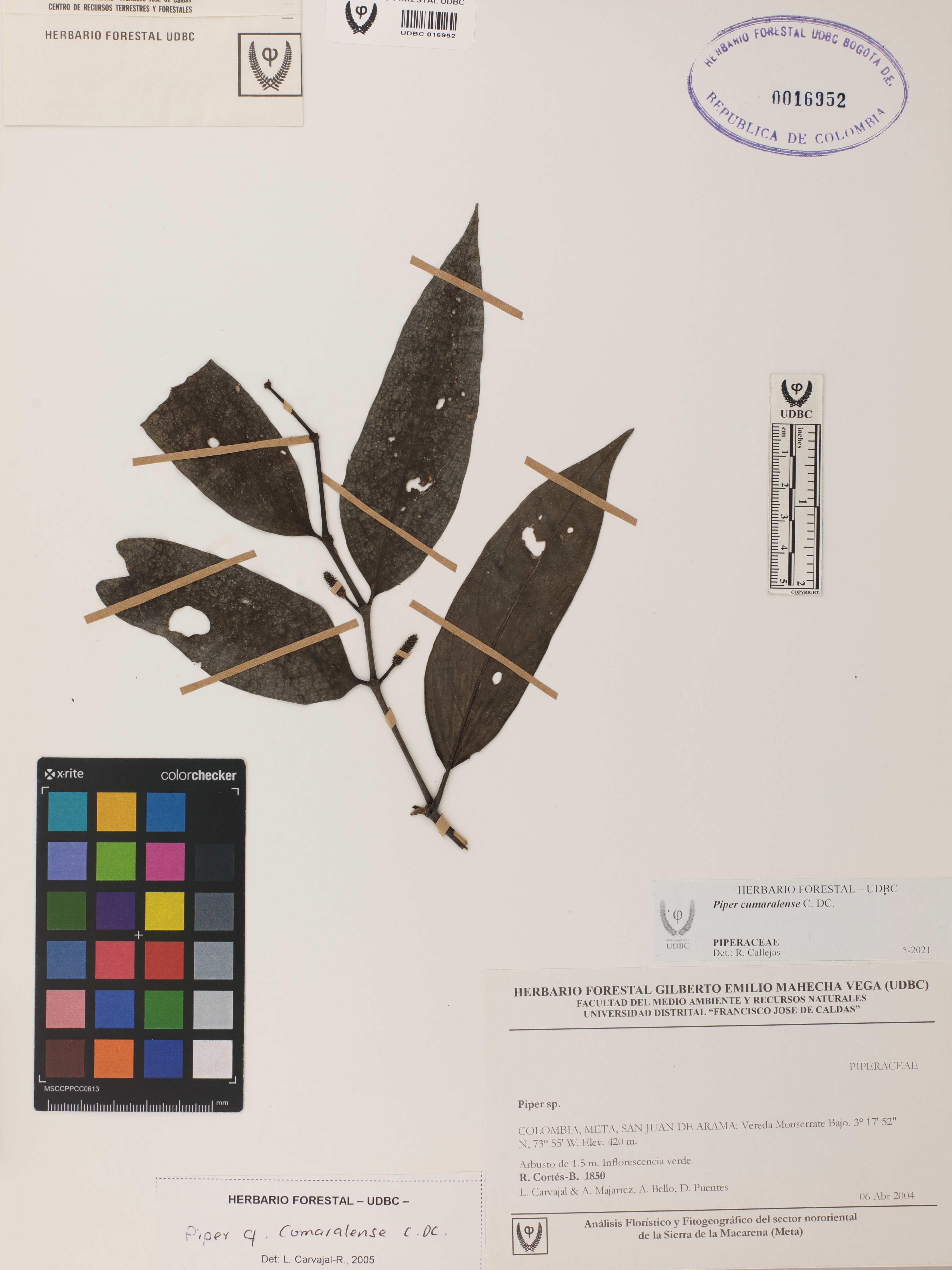 Fotografía del ejemplar Cortés-B., R. 1850, determinado como Piper cumaralense en el año 2021