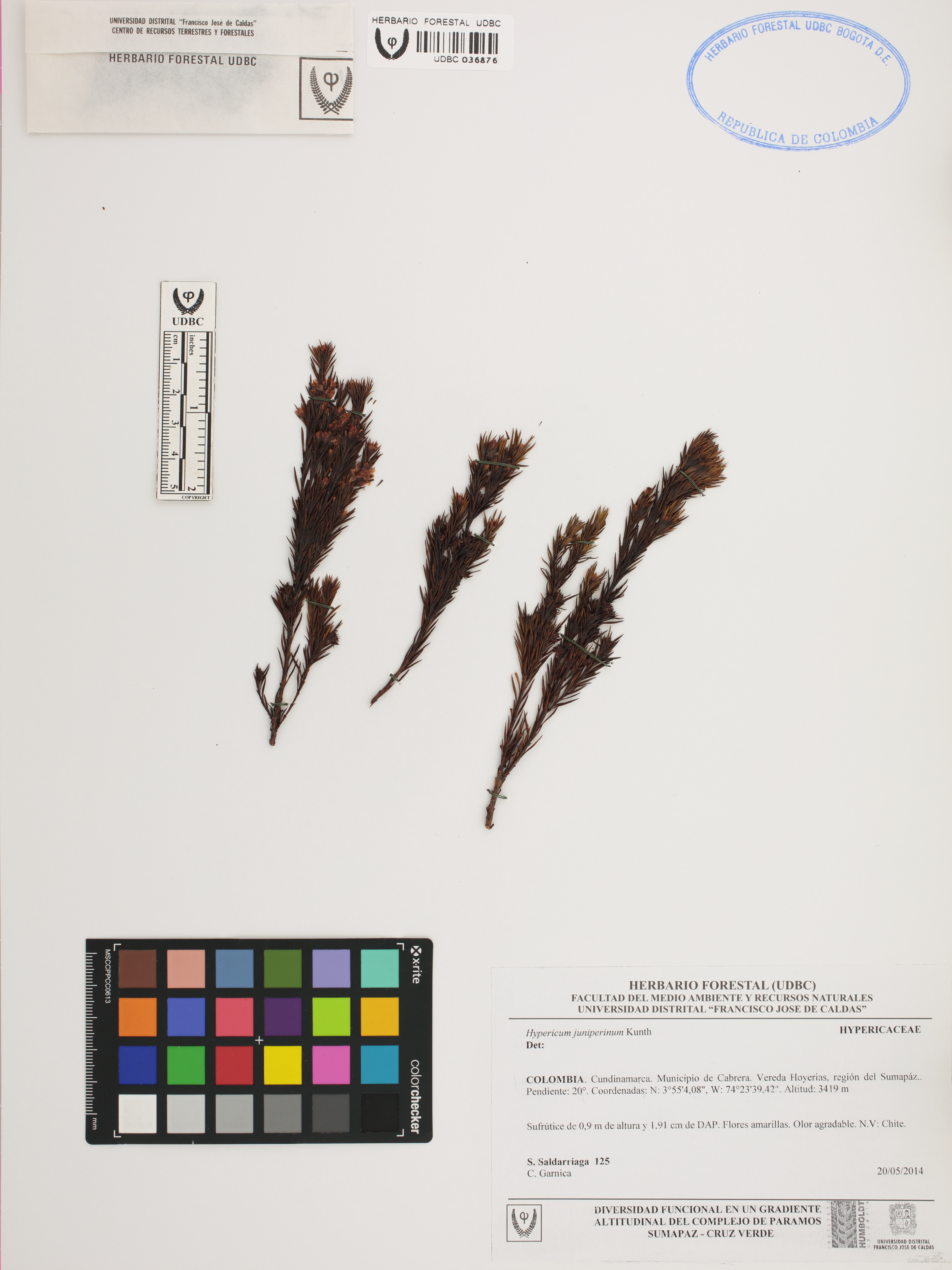 | dc.description | Fotografía del ejemplar Saldarriaga, S. 125, determinado como Hypericum juniperinum | |