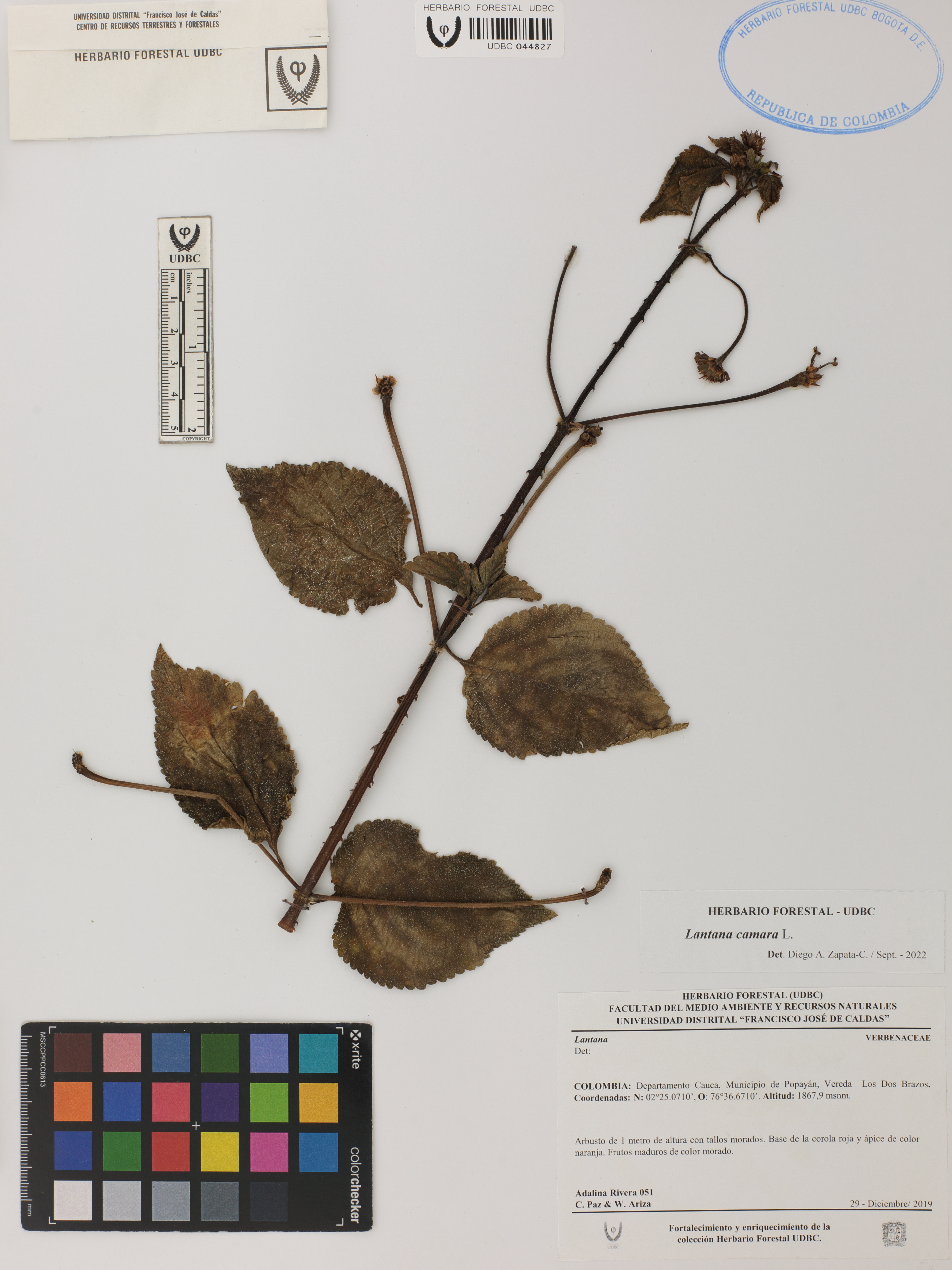 | dc.description | Fotografía del ejemplar Rivera, A. 51, determinado como Lantana camara en el año 2022 | |