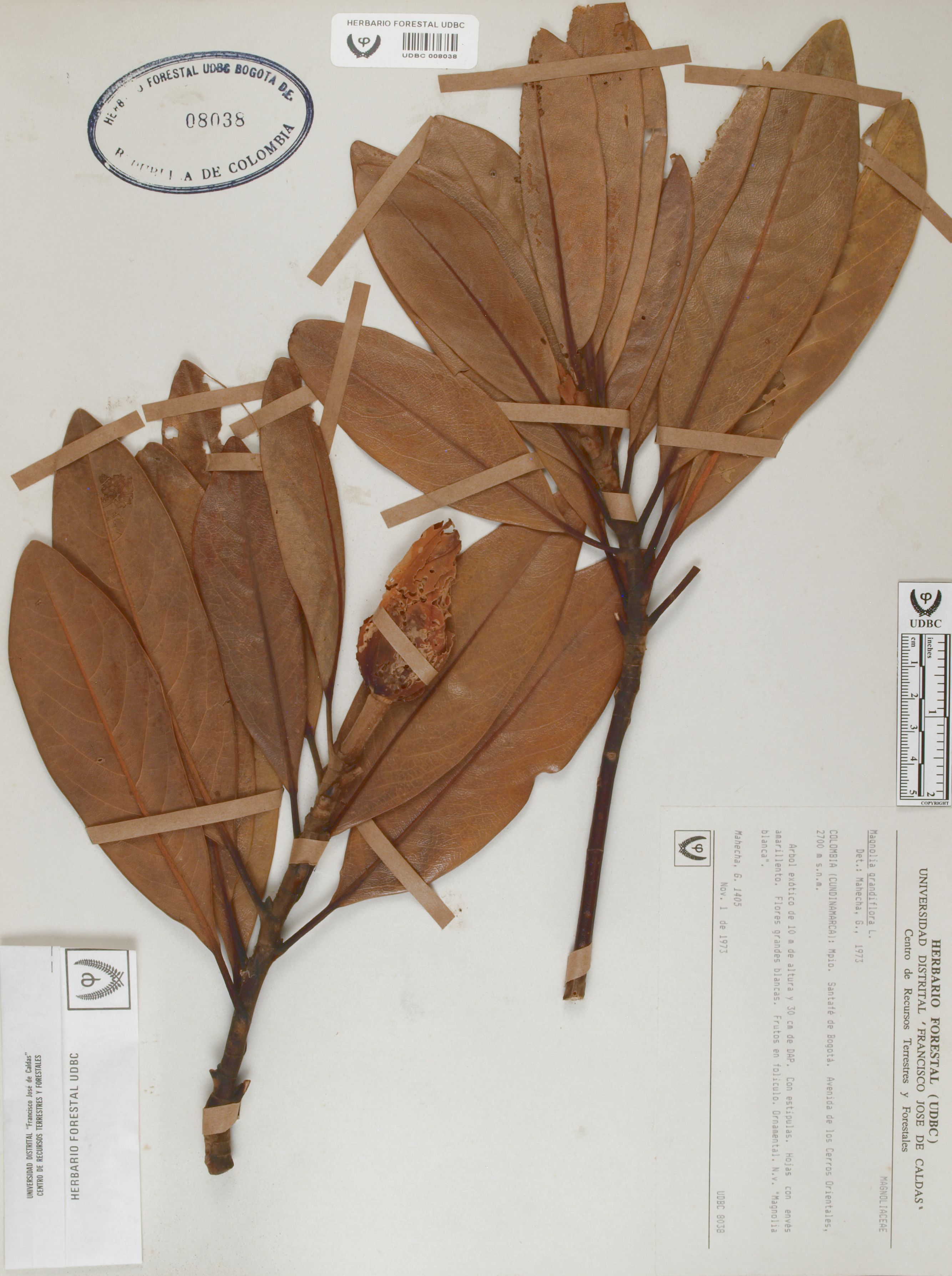 Fotografía del ejemplar Mahecha, G. 1405, determinado como Magnolia grandiflora en el año 1973