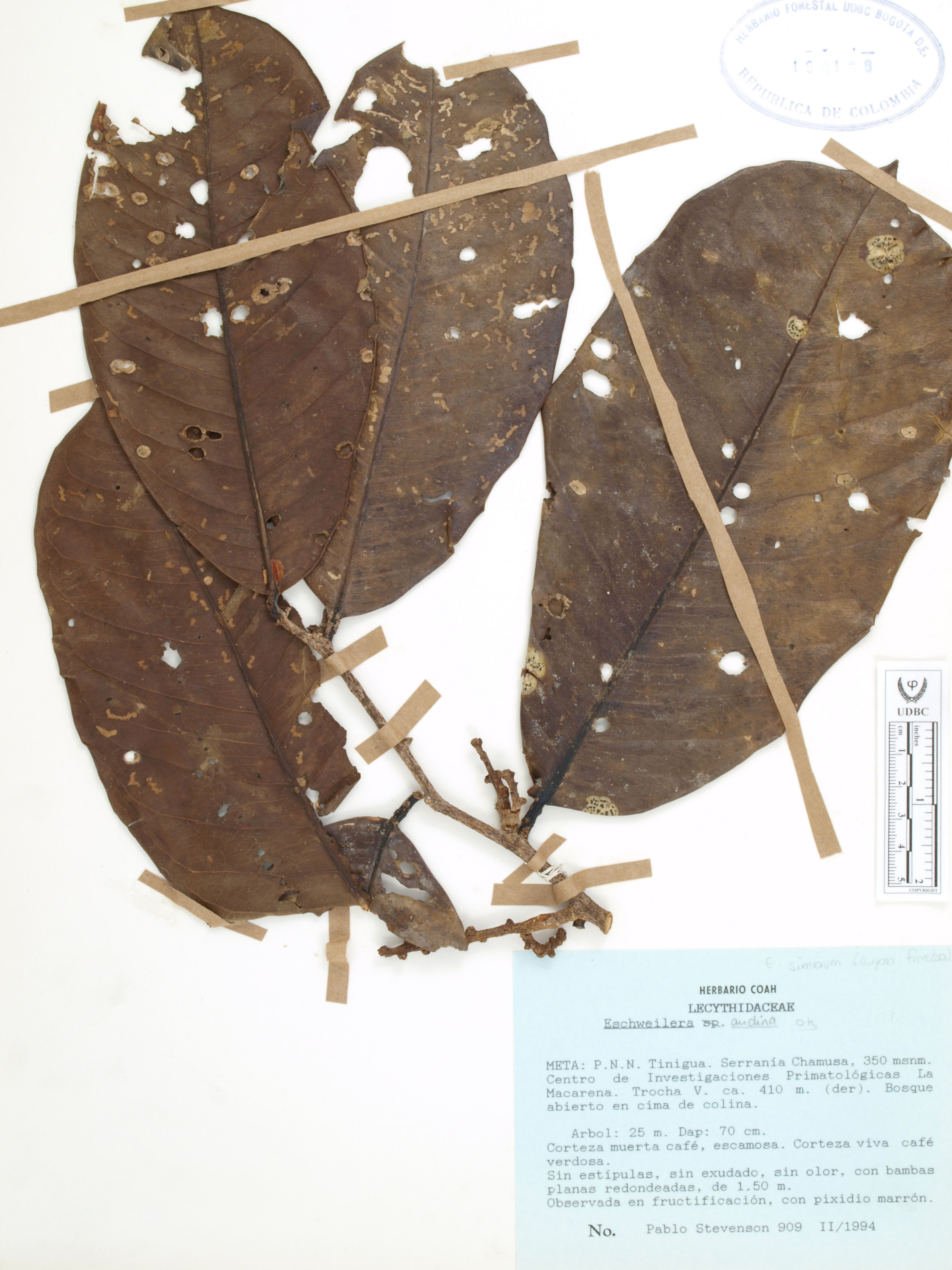 Fotografía del ejemplar Stevenson, P. 909, determinado como Eschweilera andina