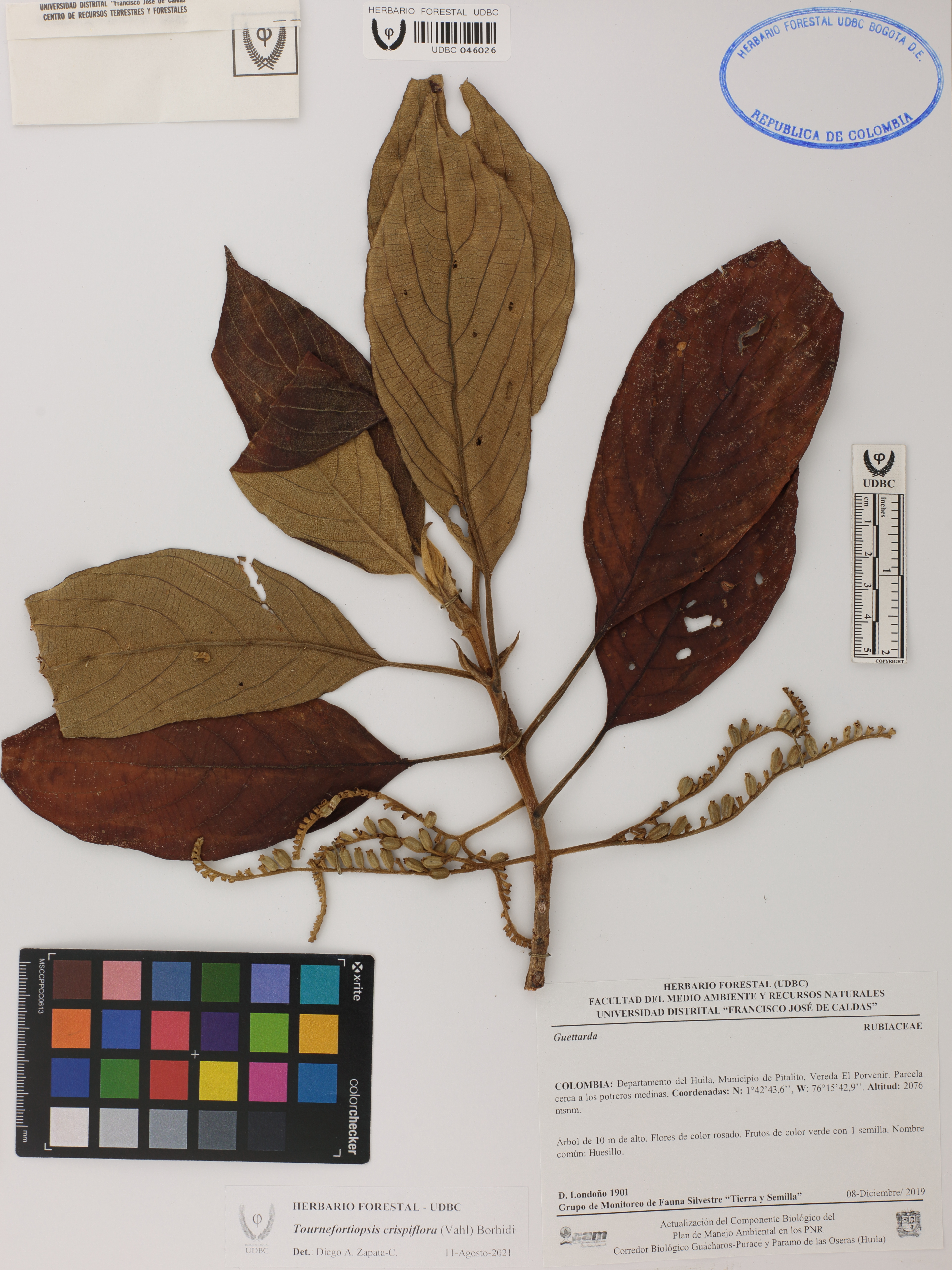 Fotografía del ejemplar Londoño, D. 1901, determinado como Tournefortiopsis crispiflora en el año 2021