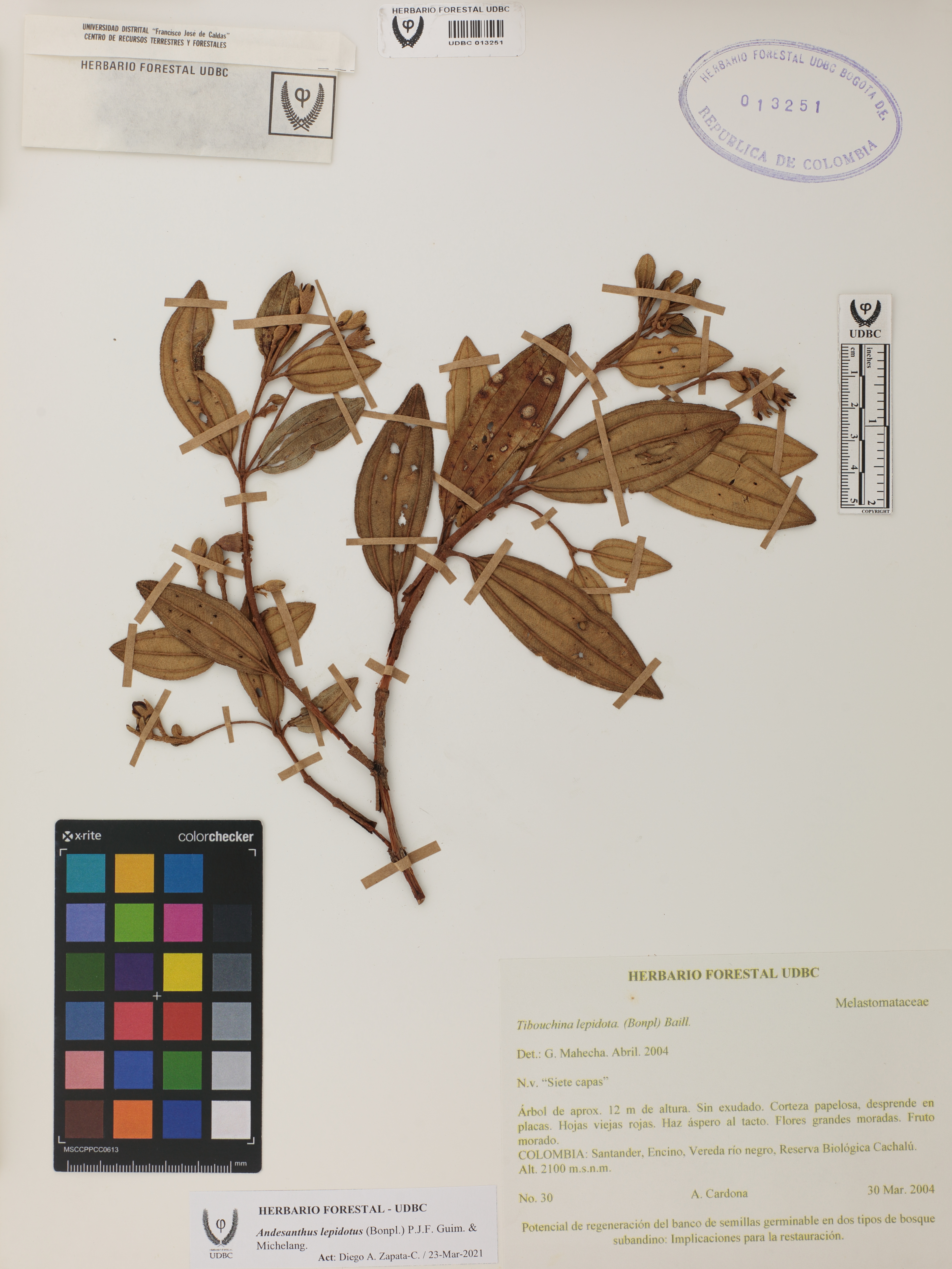 Fotografía del ejemplar Cardona, A. 30, determinado como Andesanthus lepidotus en el año 2004