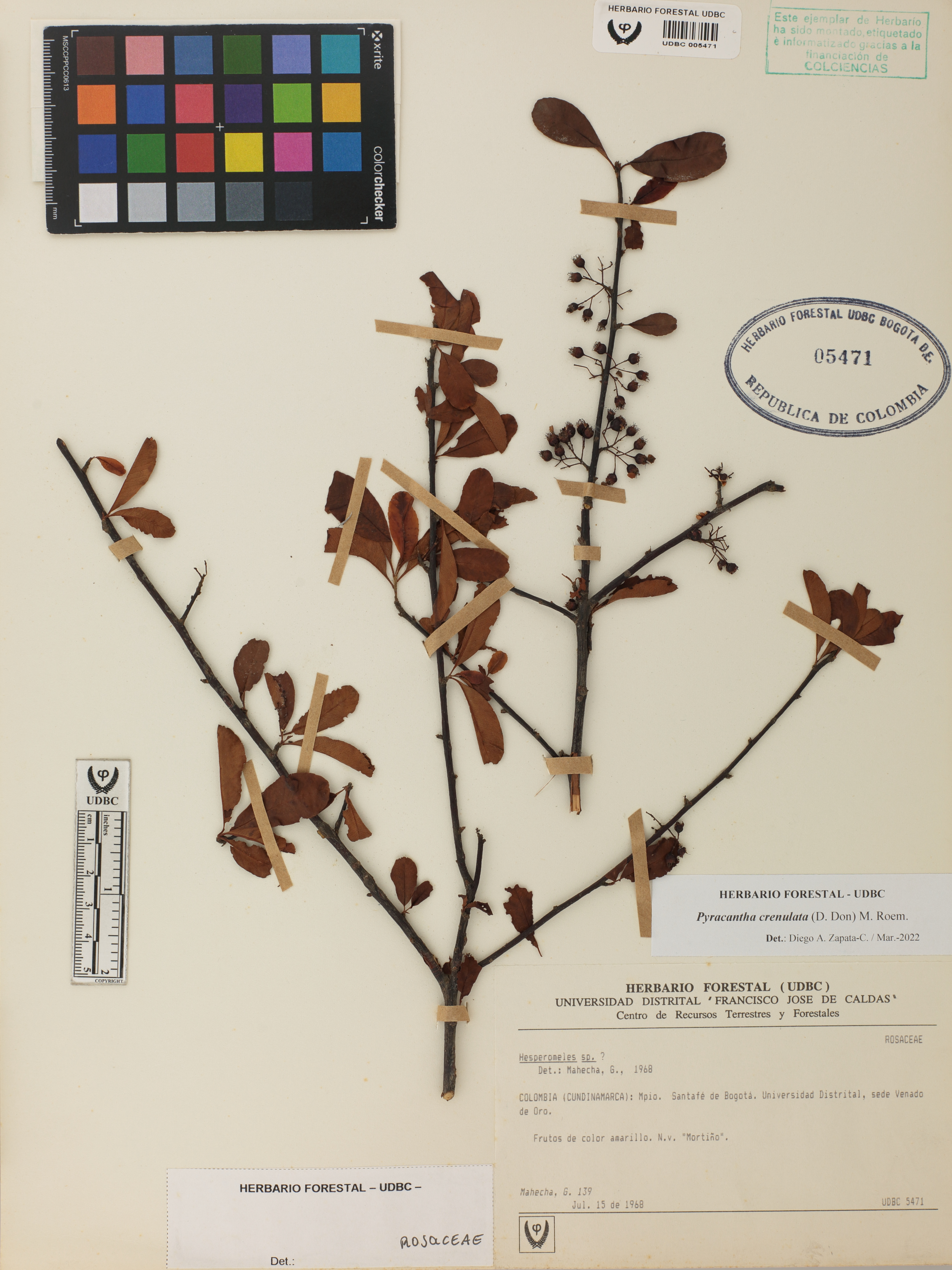 | dc.description | Fotografía del ejemplar Mahecha, G. 139, determinado como Pyracantha crenulata en el año 2022 | |