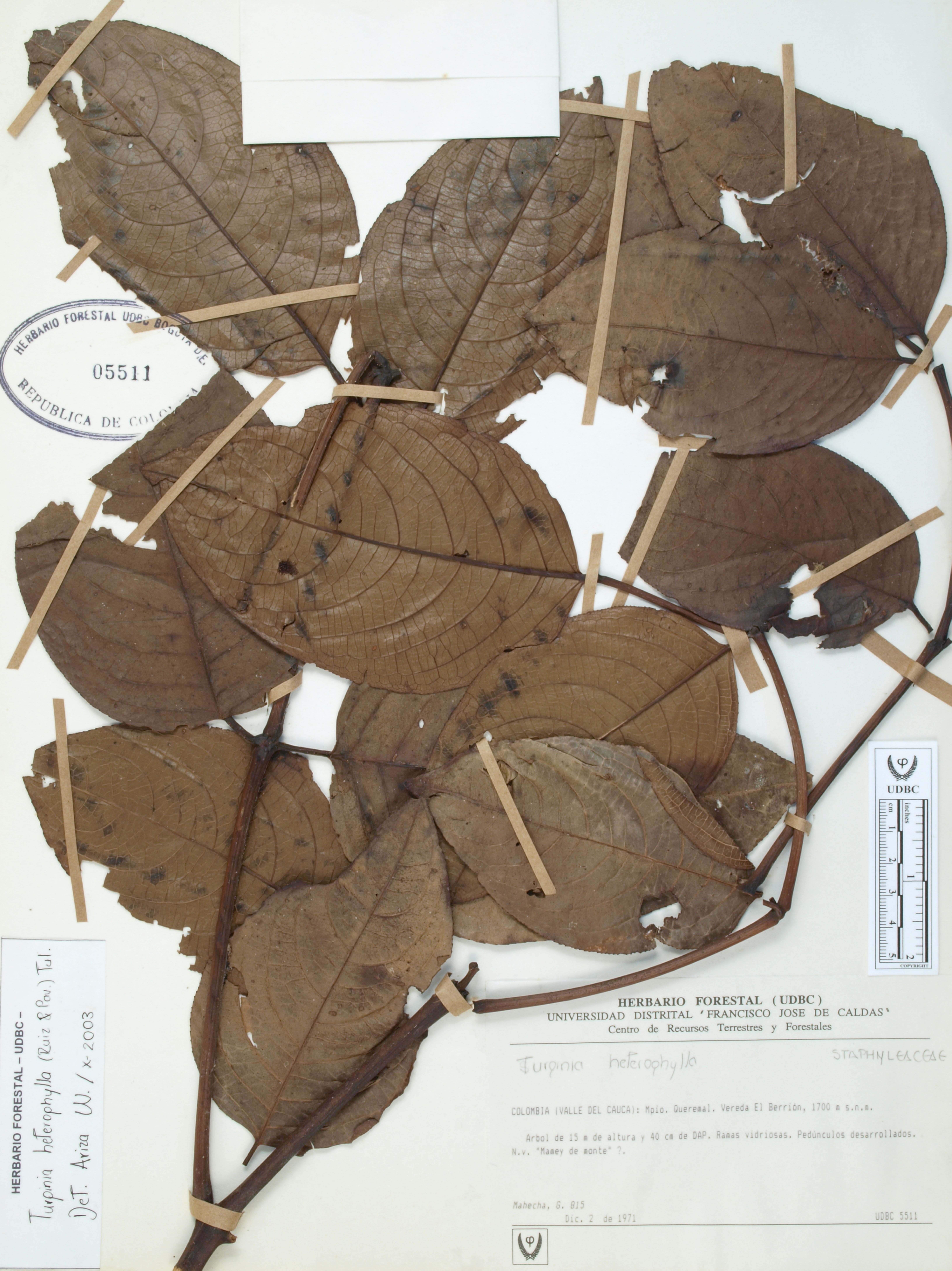Fotografía del ejemplar Mahecha, G. 815, determinado como Turpinia heterophylla en el año 2003