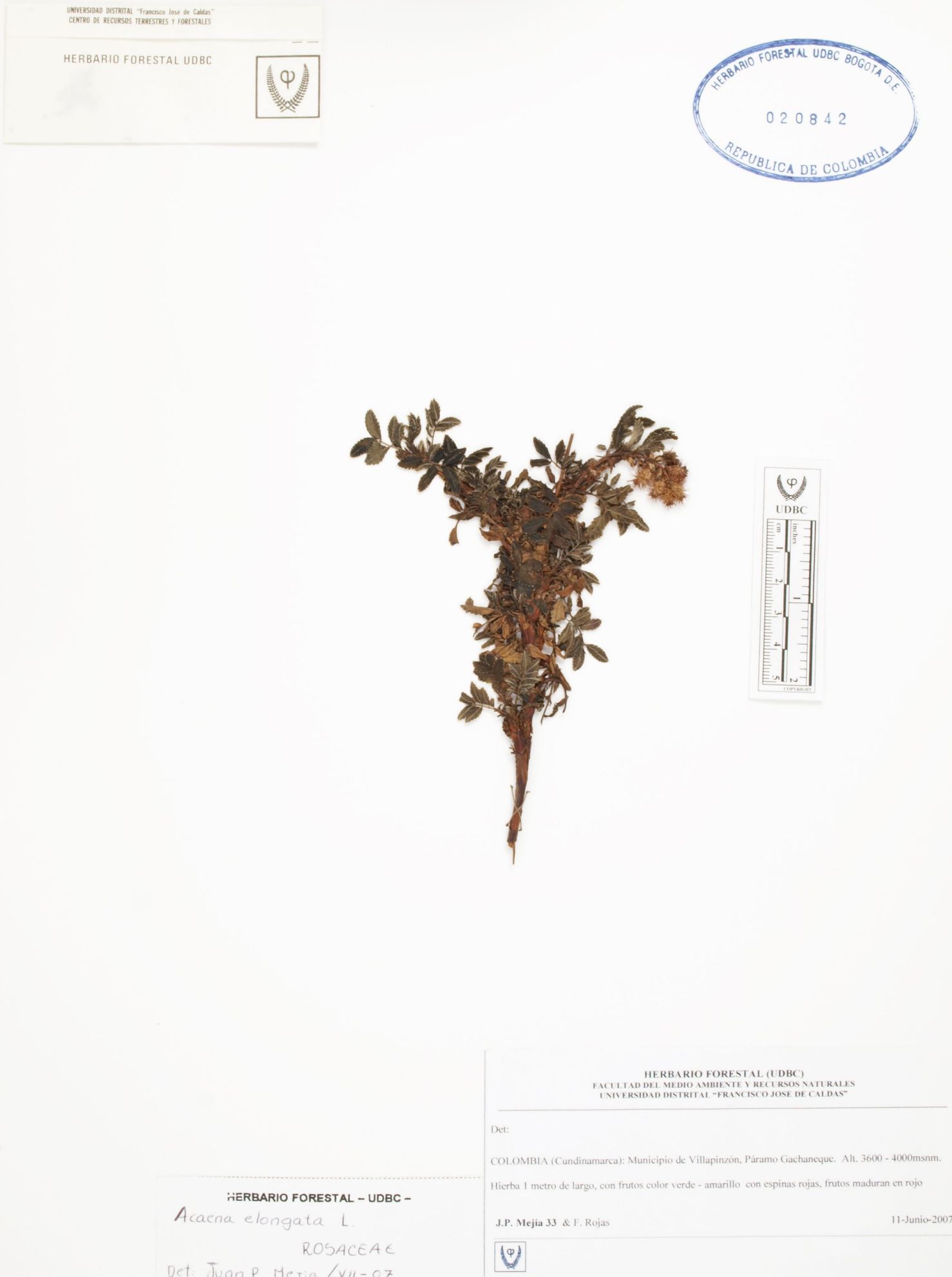 | dc.description | Fotografía del ejemplar Mejía, J. 33, determinado como Acaena elongata en el año 2007 | |