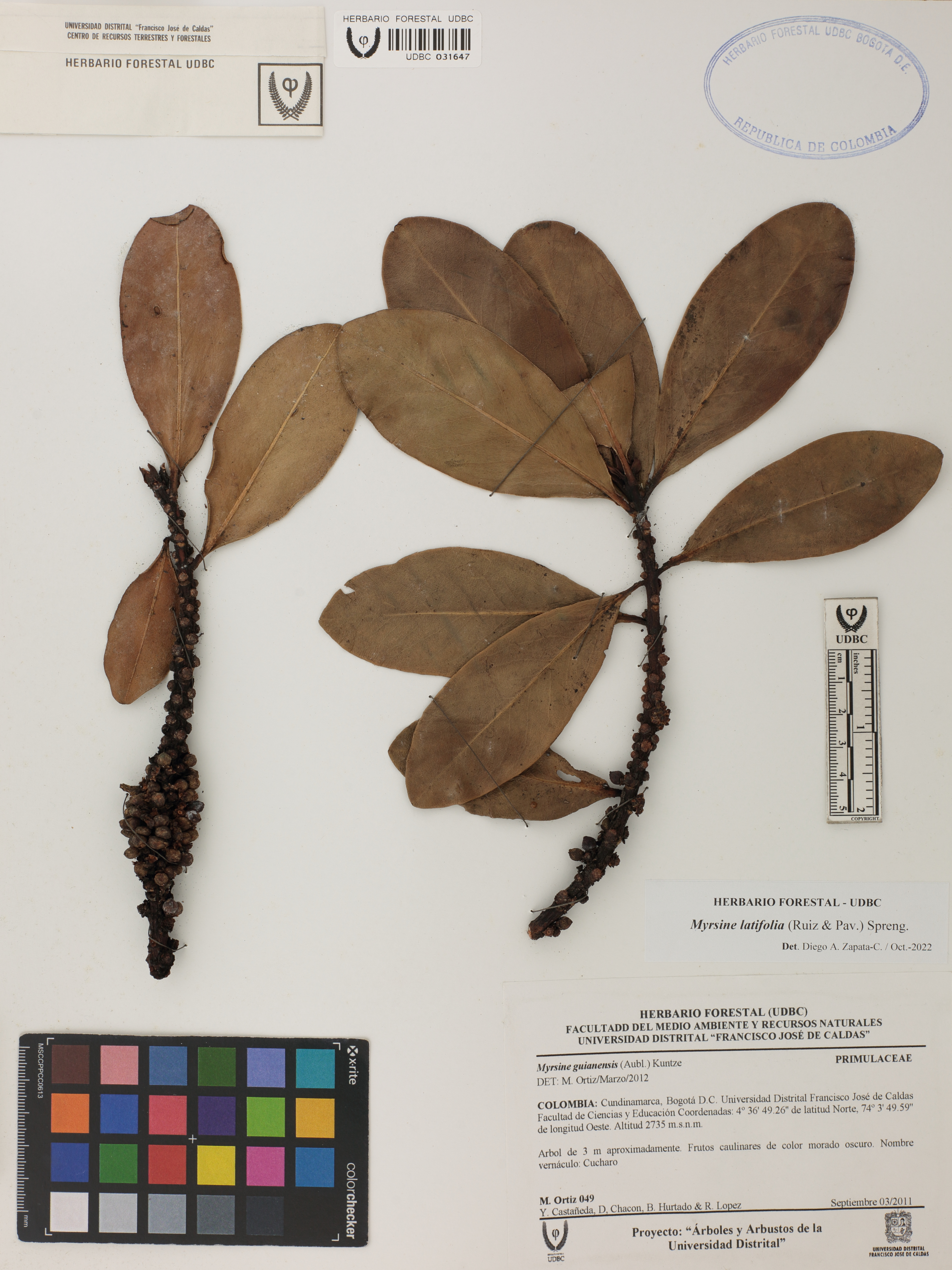 | dc.description | Fotografía del ejemplar Ortiz, M. 49, determinado como Myrsine latifolia en el año 2022 | |