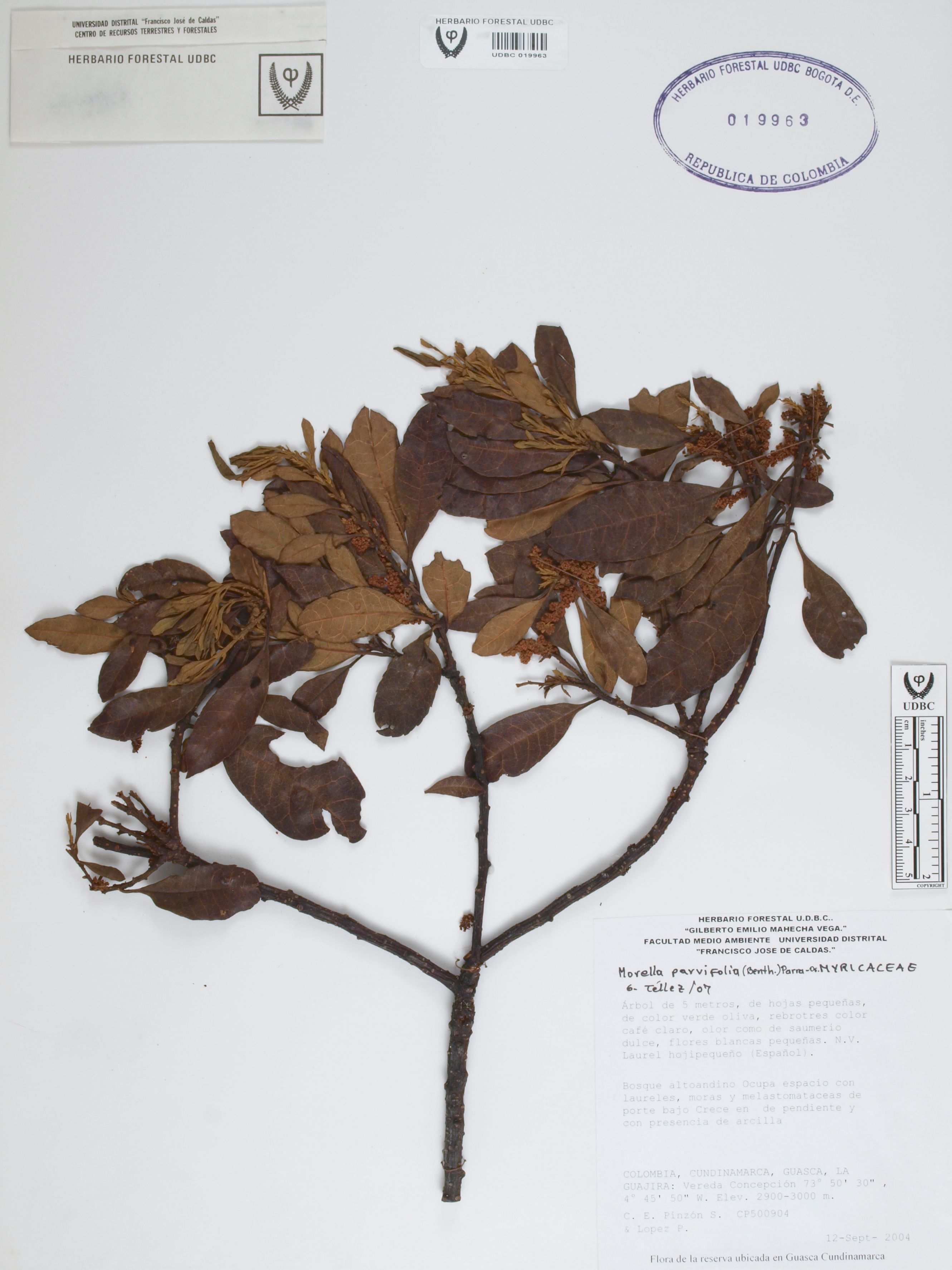 Fotografía del ejemplar Pinzón, C. 50, determinado como Morella parvifolia en el año 2007
