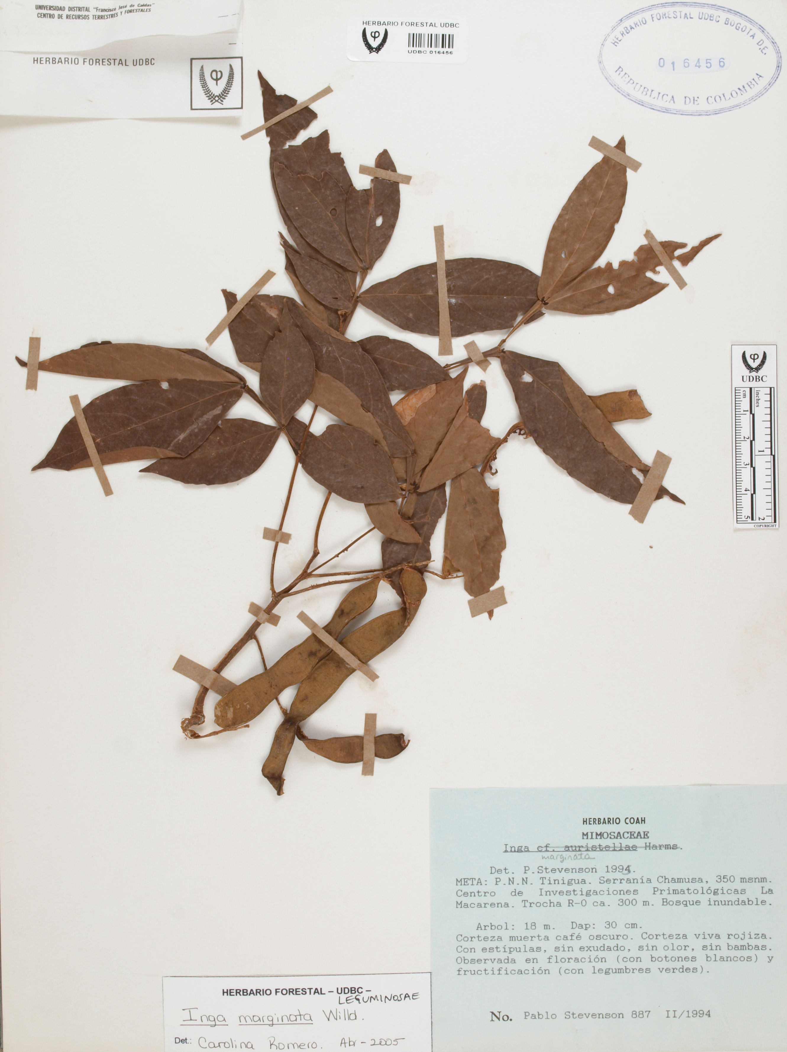 Fotografía del ejemplar Stevenson, P. 887, determinado como Inga marginata en el año 2005