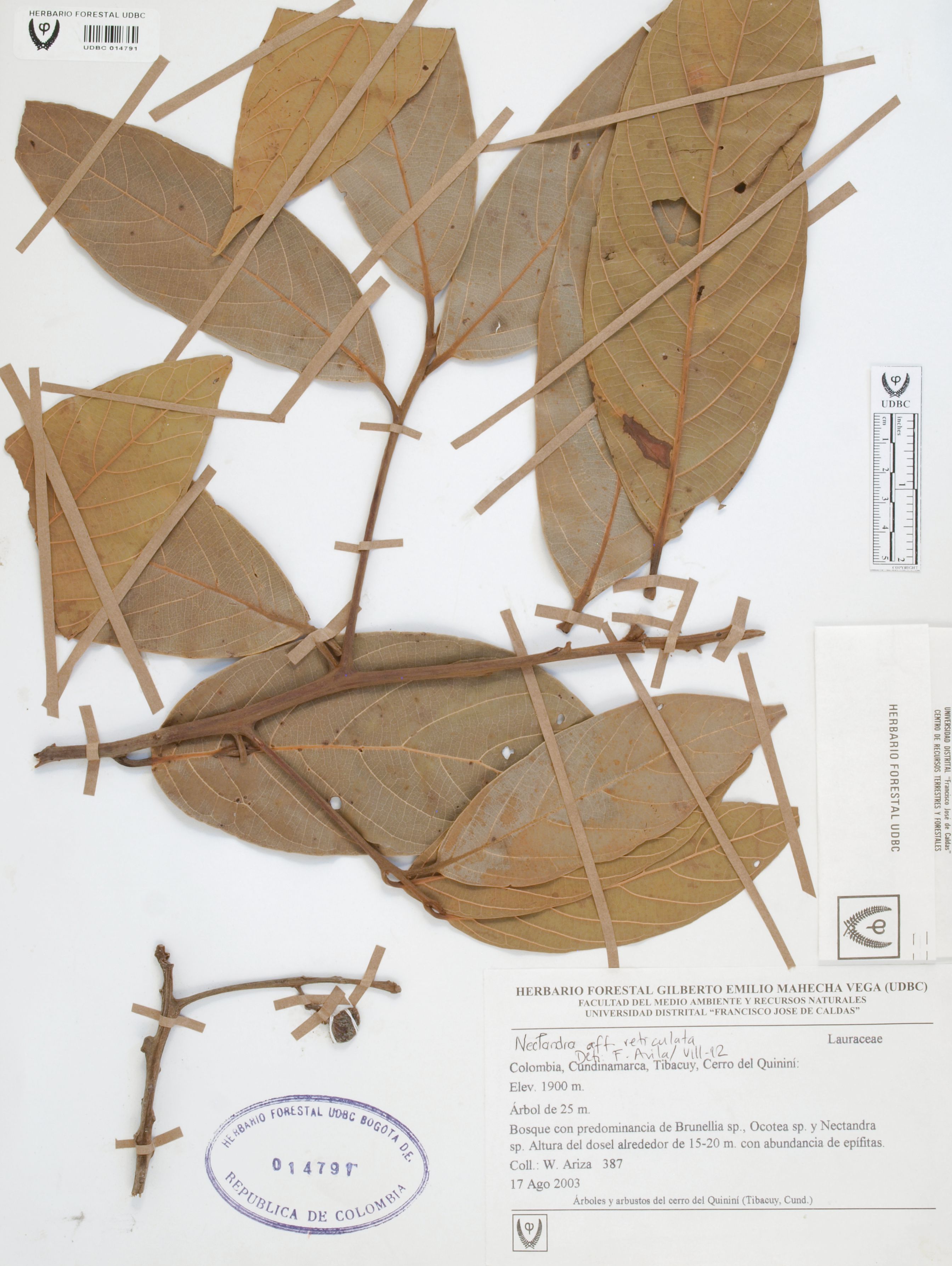 Fotografía del ejemplar Ariza, W. 387, determinado como Nectandra sp. en el año 2022