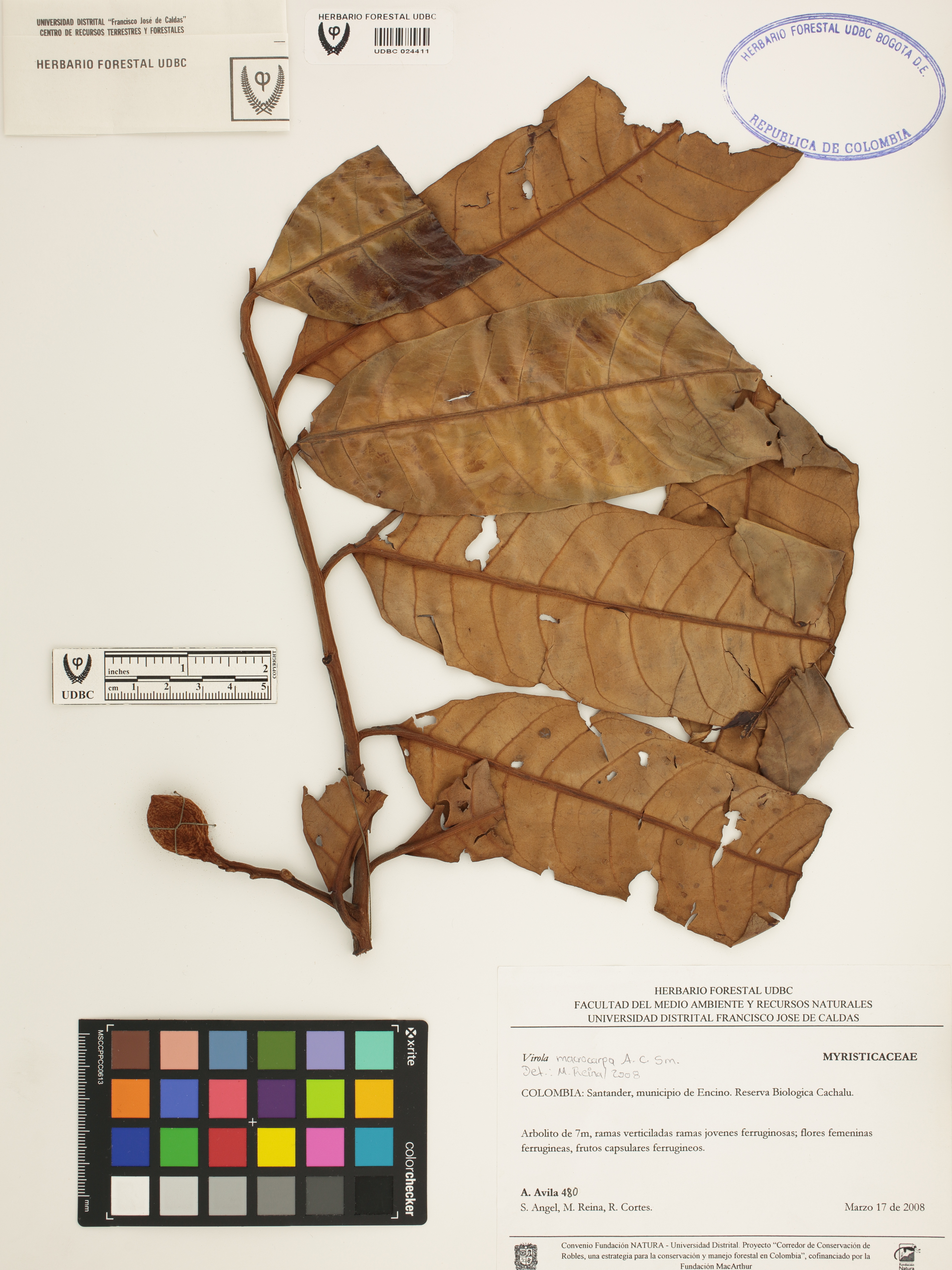 | dc.description | Fotografía del ejemplar Ávila, A. 480, determinado como Virola macrocarpa en el año 2008 | |