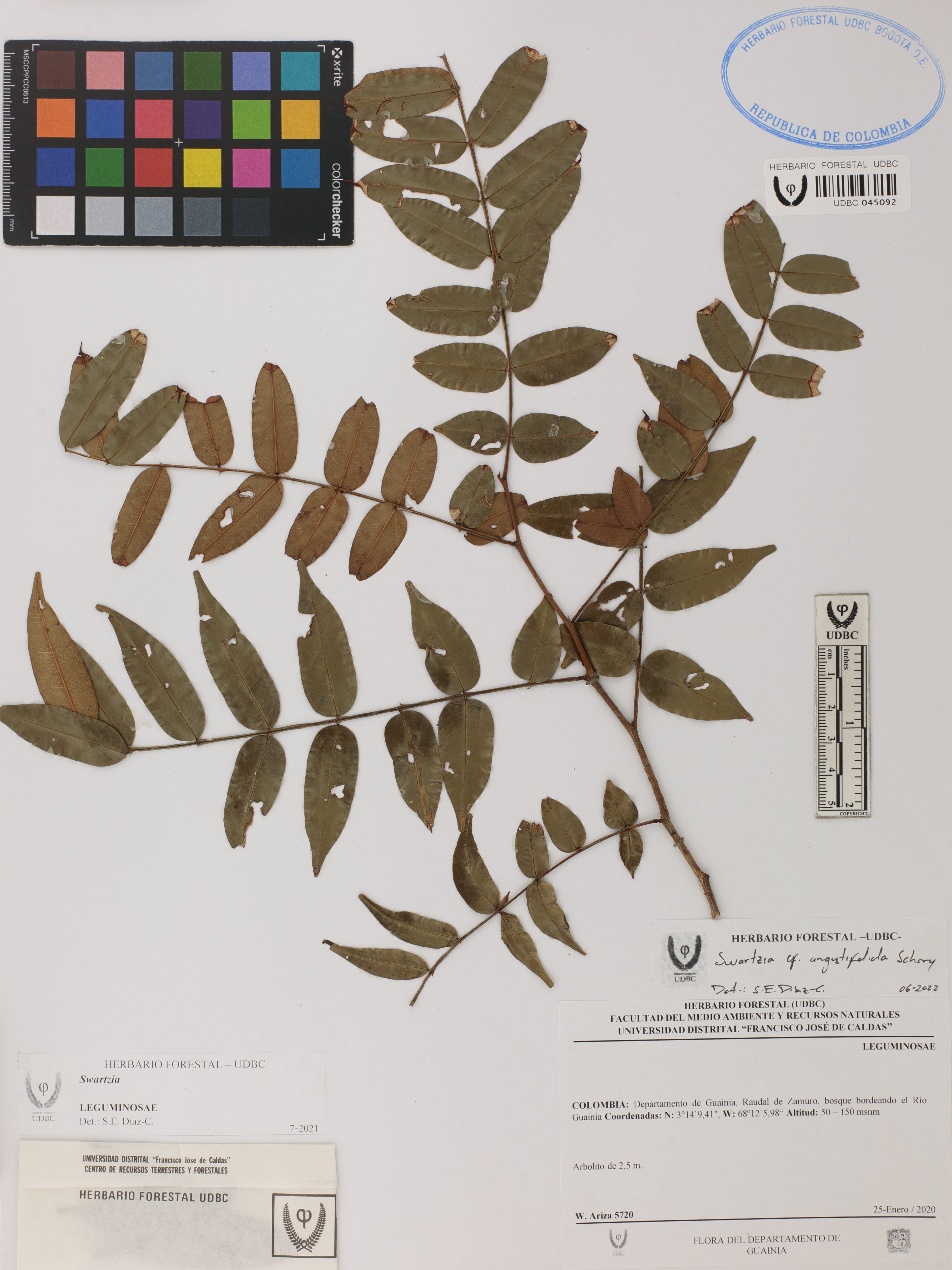 | dc.description | Fotografía del ejemplar Ariza-Cortés, W. 5720, determinado como Swartzia angustifoliola en el año 2022 | |