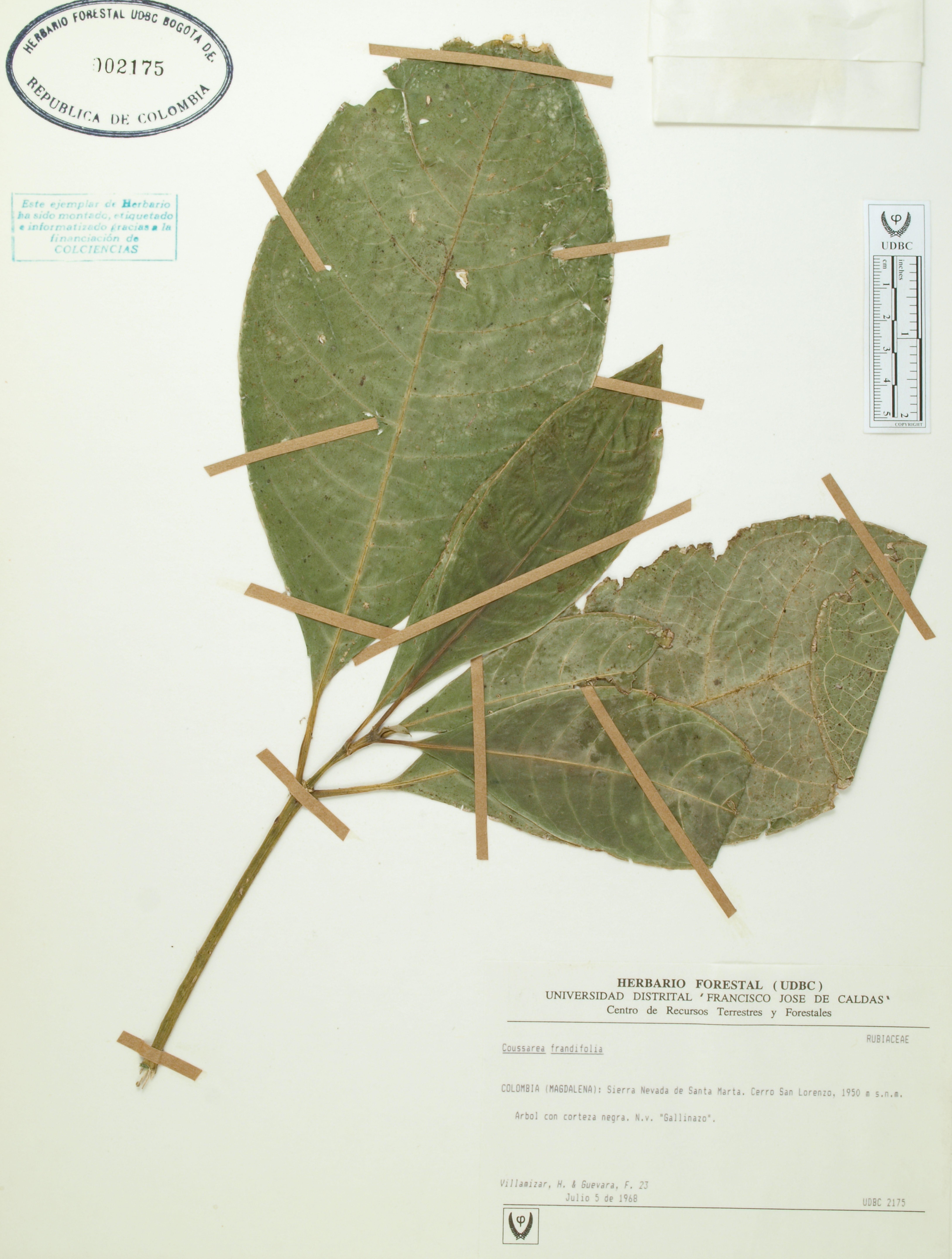 Fotografía del ejemplar Villamizar, H. 23, determinado como Coussarea grandifolia