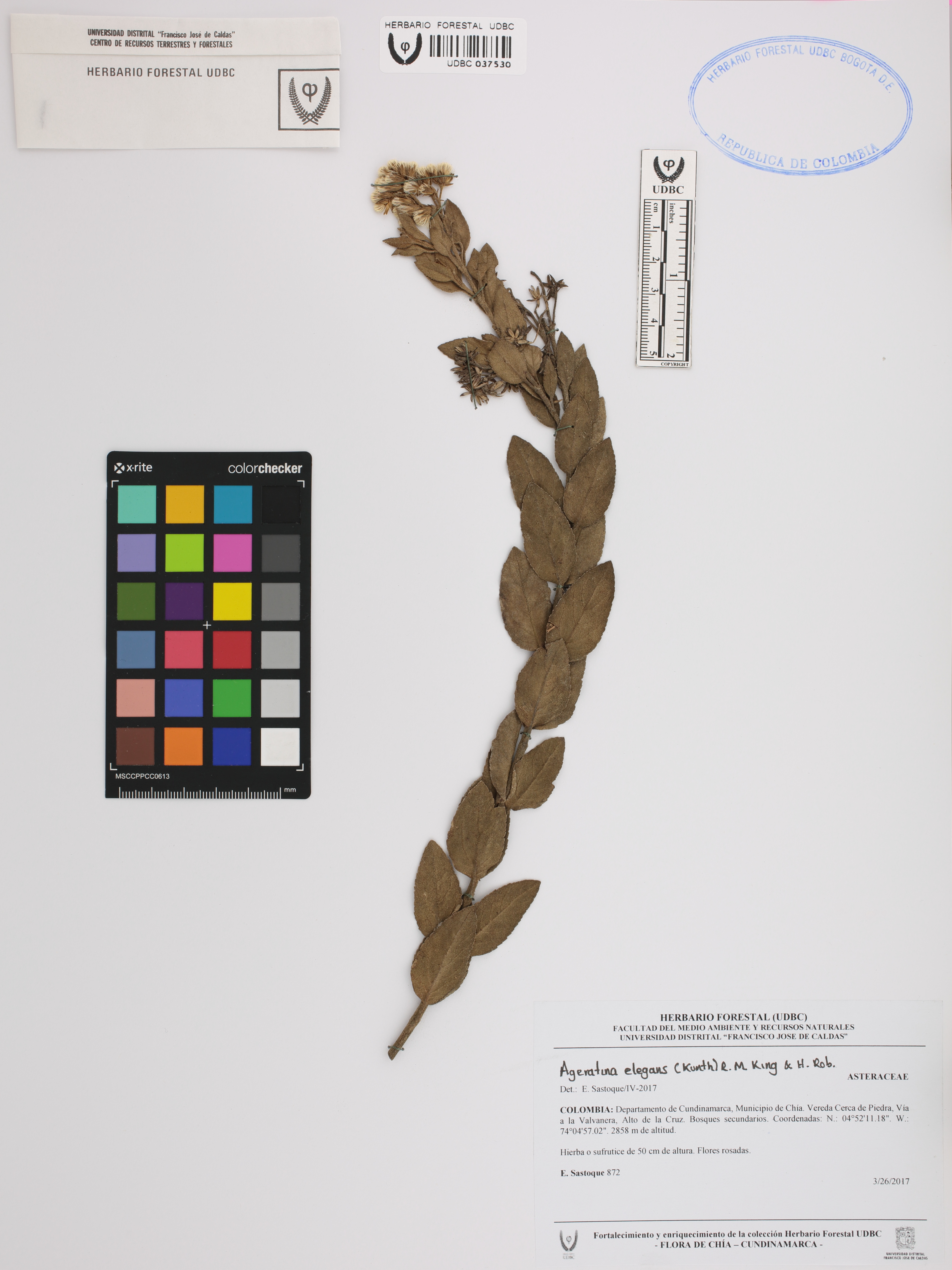 Fotografía del ejemplar Sastoque, E. 872, determinado como Ageratina elegans en el año 2017