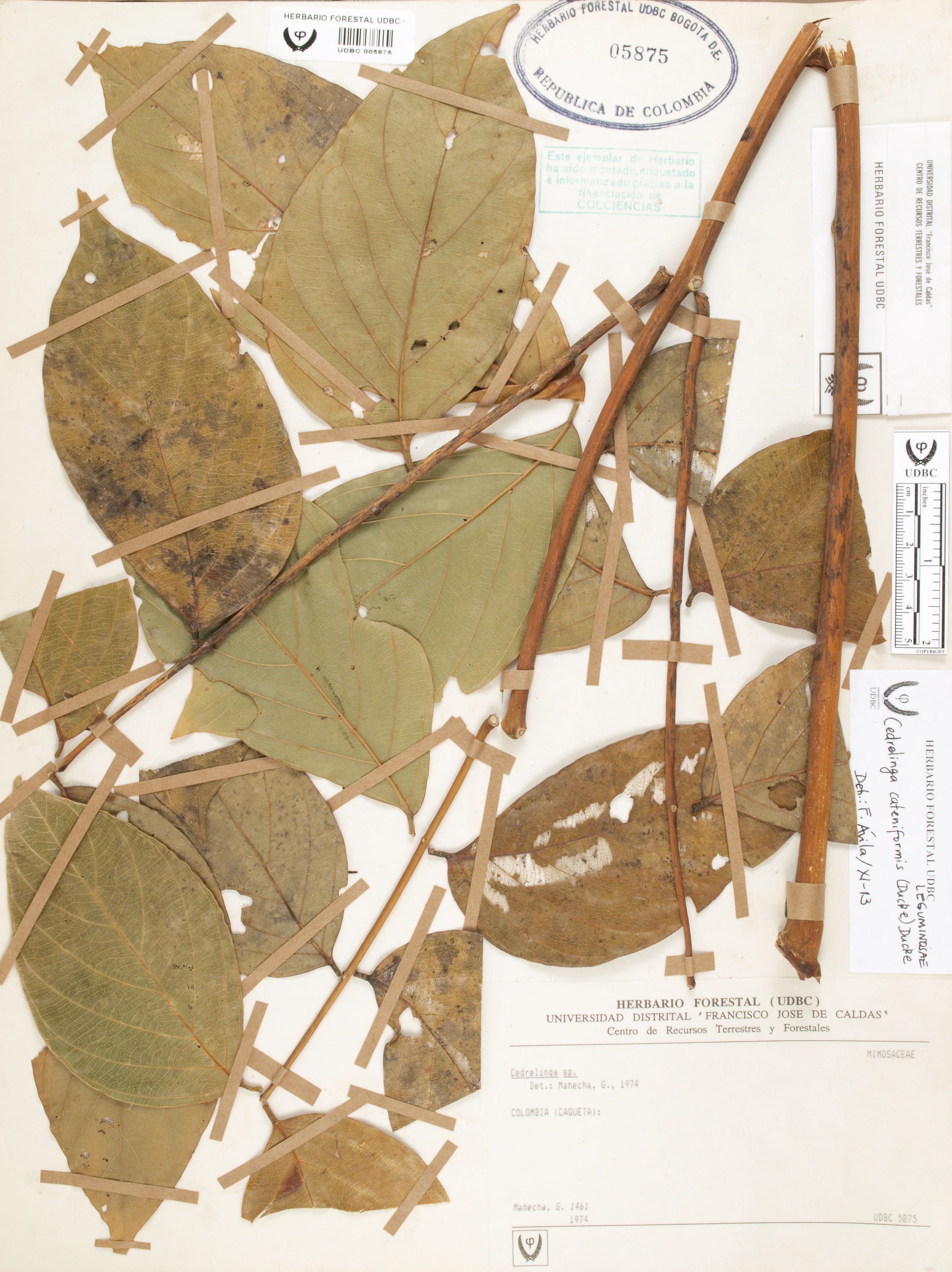 Fotografía del ejemplar Mahecha, G. 1461, determinado como Cedrelinga cateniformis en el año 2013