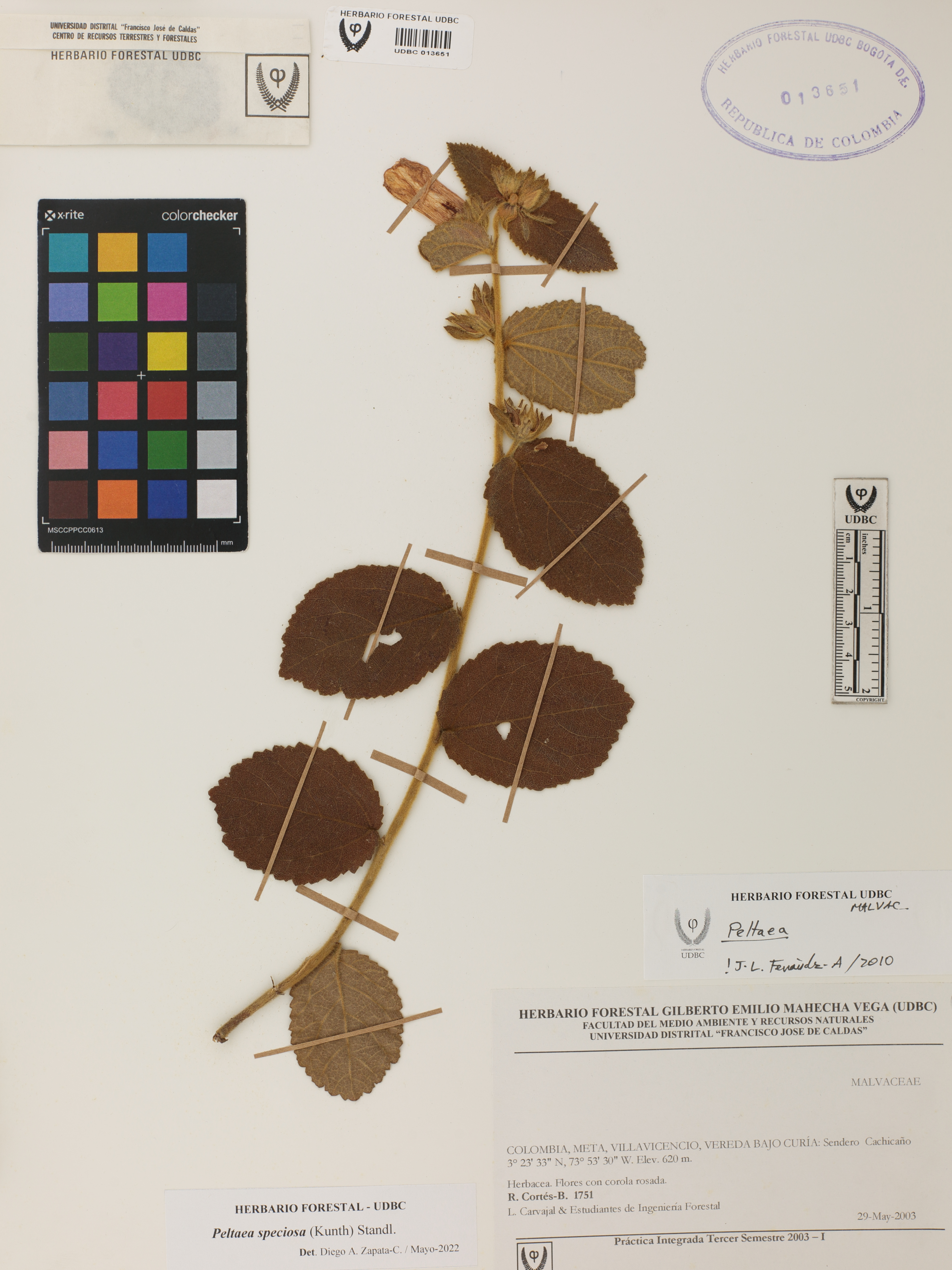 Fotografía del ejemplar Cortés-B., R. 1751, determinado como Peltaea speciosa en el año 2022