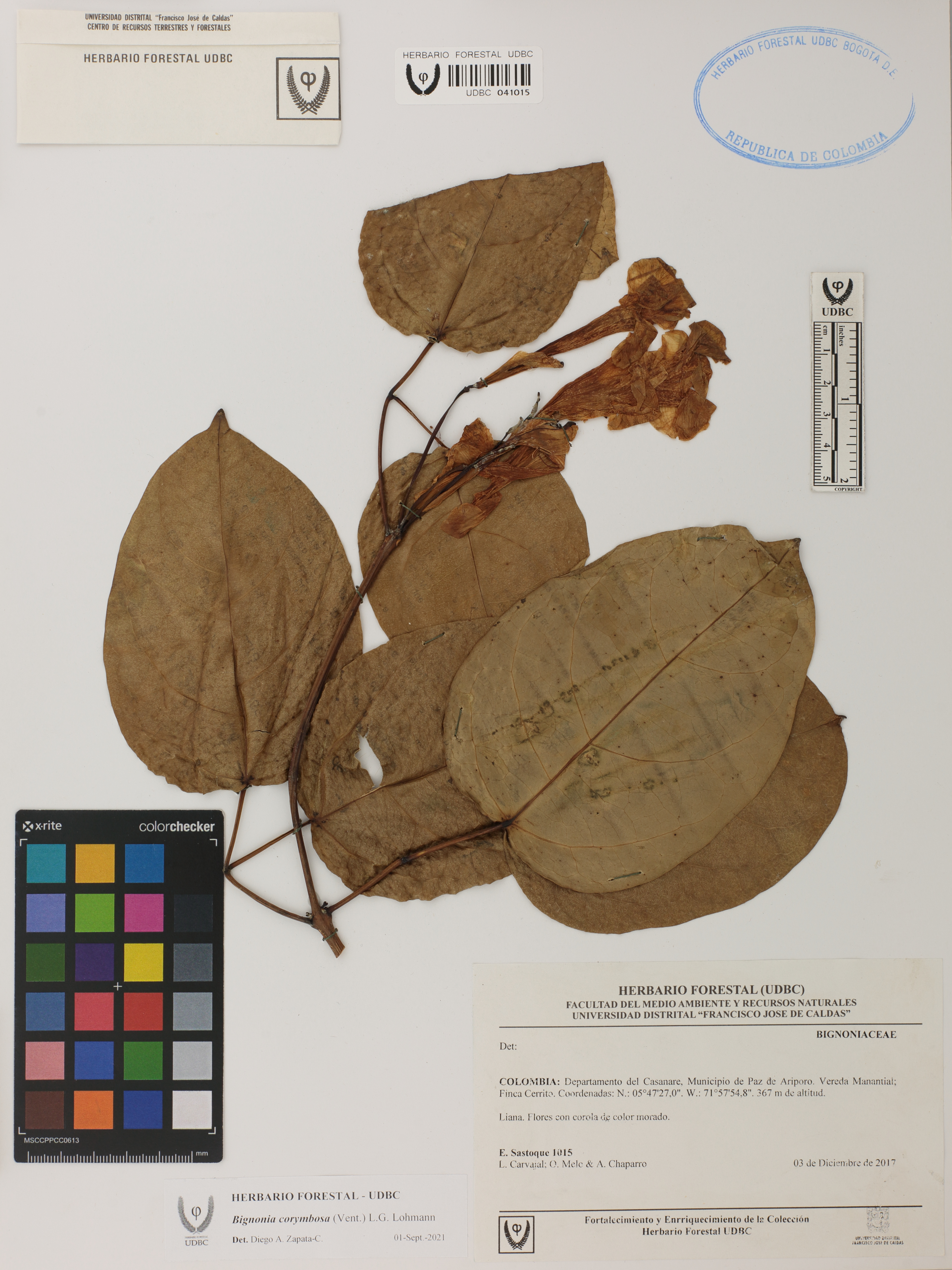 | dc.description | Fotografía del ejemplar Sastoque, E. 1015, determinado como Bignonia corymbosa en el año 2021 | |
