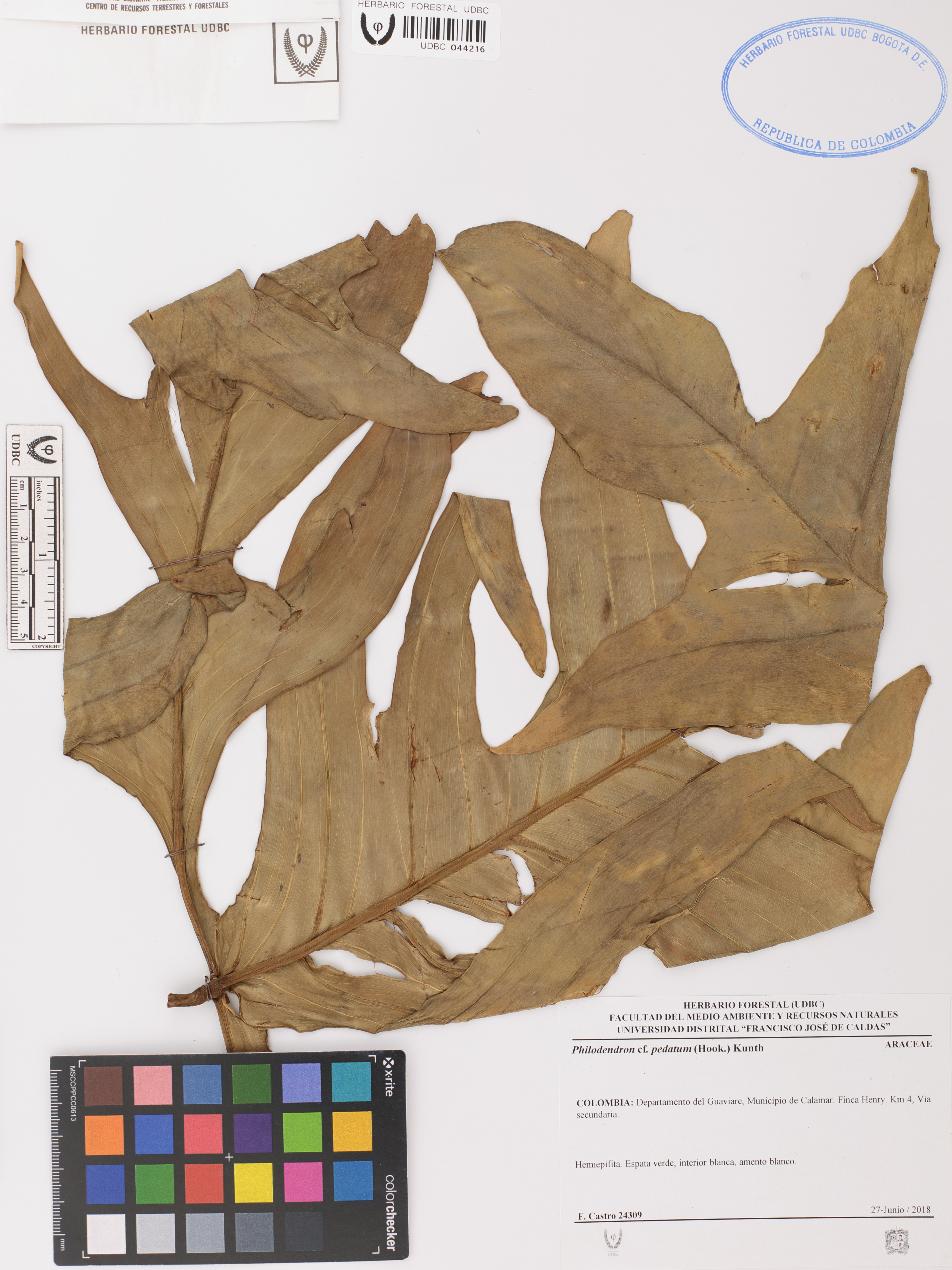 | dc.description | Fotografía del ejemplar Castro, F. 24309, determinado como Philodendron pedatum en el año 2018 | |