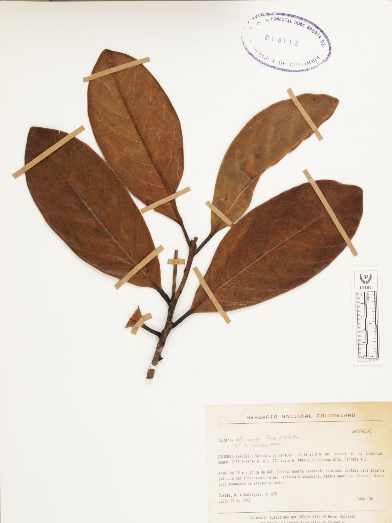 Fotografía del ejemplar Cortés-B., R. 150, determinado como Pouteria ucuqui