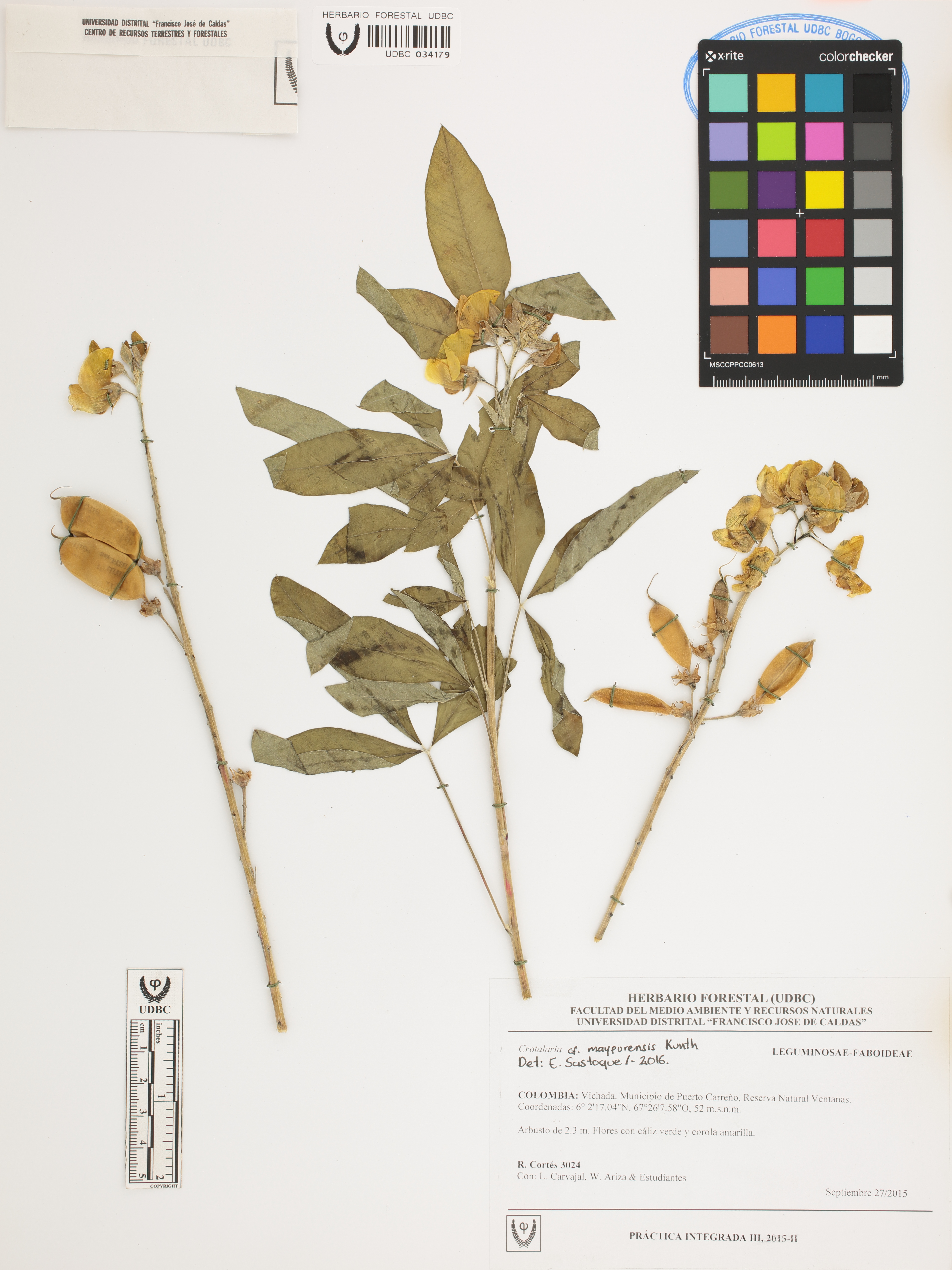 Fotografía del ejemplar Cortés, R. 3024, determinado como Crotalaria maypurensis en el año 2016