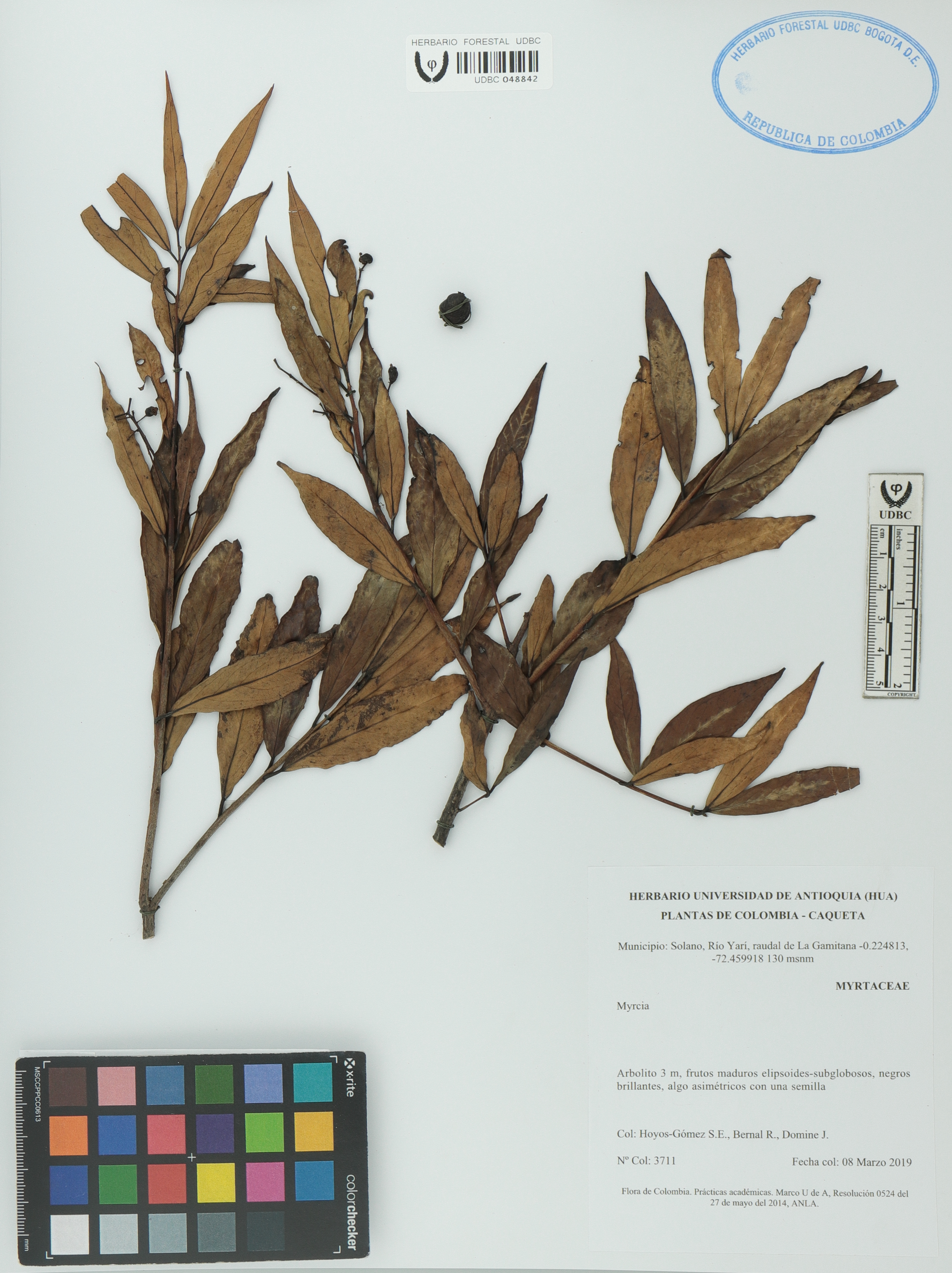 Fotografía del ejemplar Hoyos-G., S. 3711, determinado como Myrcia sp.
