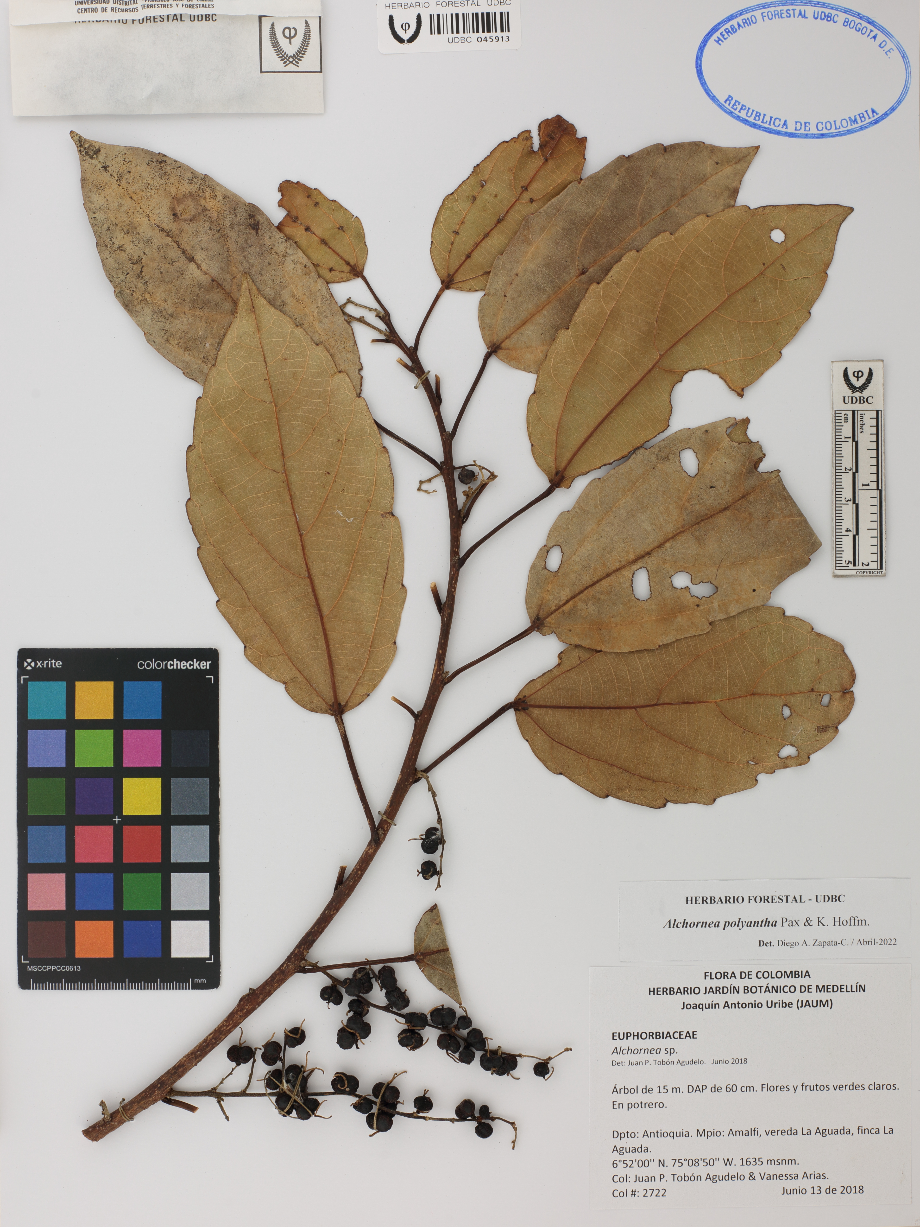 | dc.description | Fotografía del ejemplar Tobón-Agudelo, J. 2722, determinado como Alchornea polyantha en el año 2022 | |