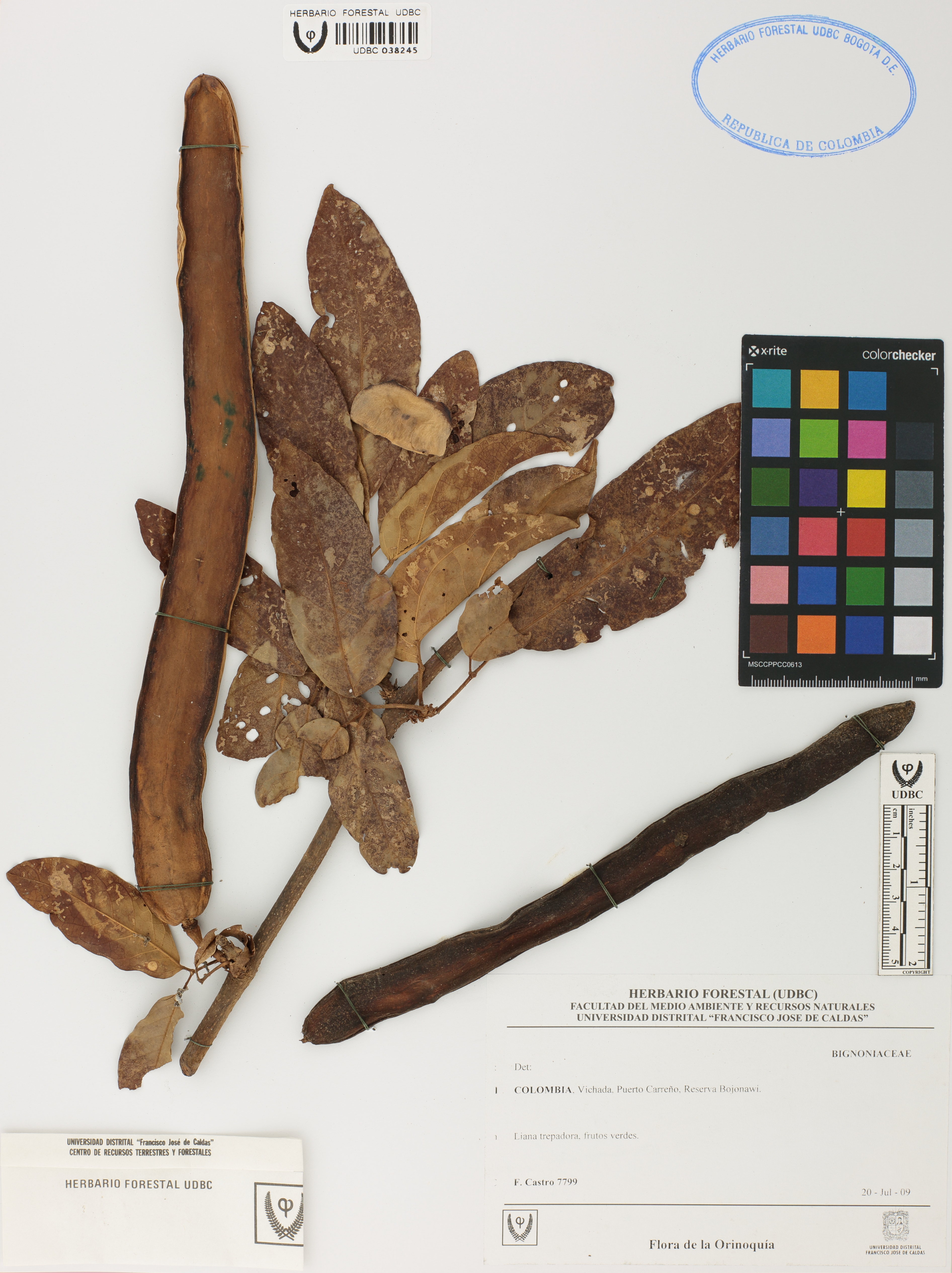 Fotografía del ejemplar Castro, F. 7799, determinado como Bignoniaceae