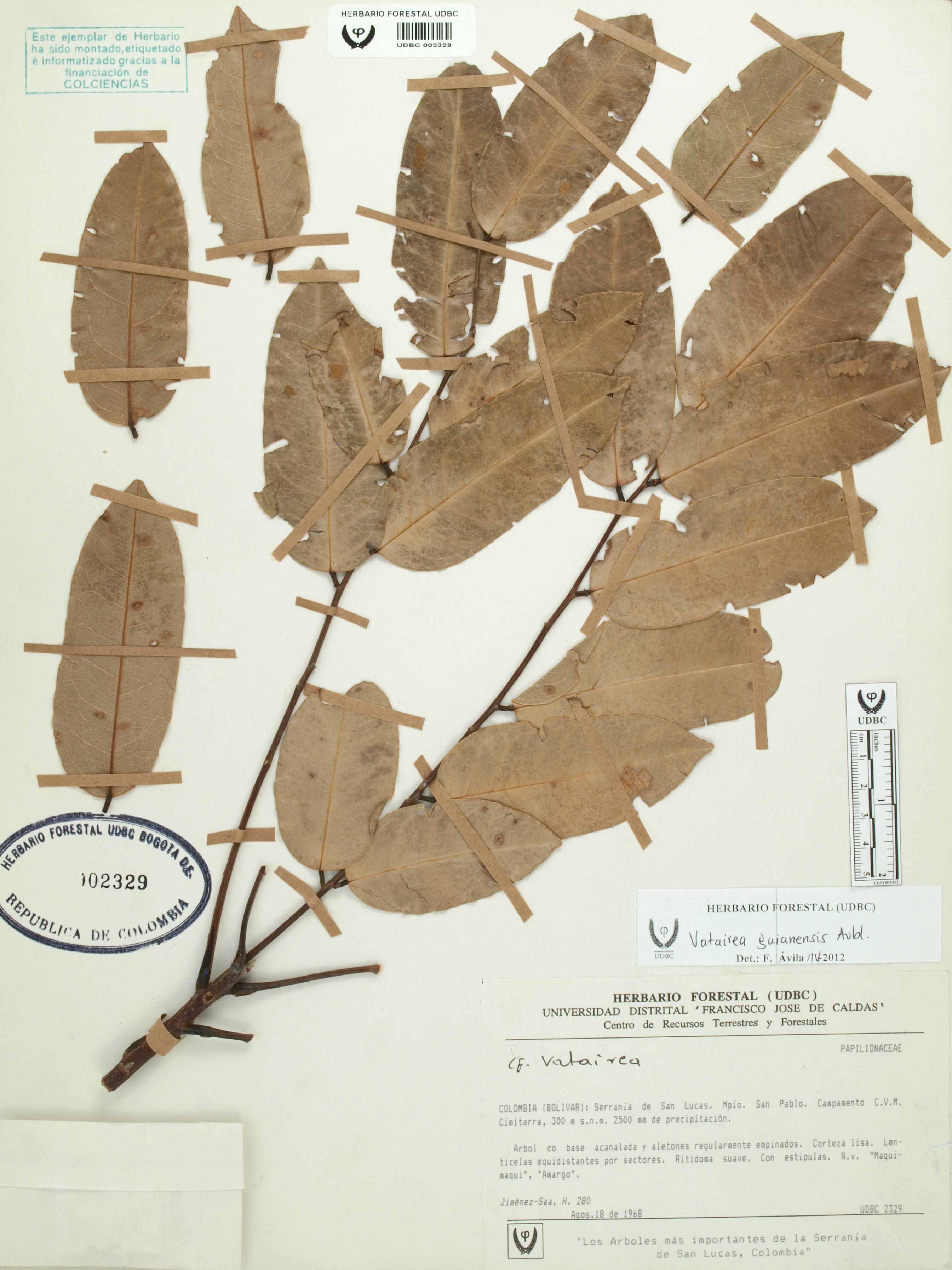 | dc.description | Fotografía del ejemplar Jiménez-Saa, H. 280, determinado como Vatairea guianensis en el año 2012 | |