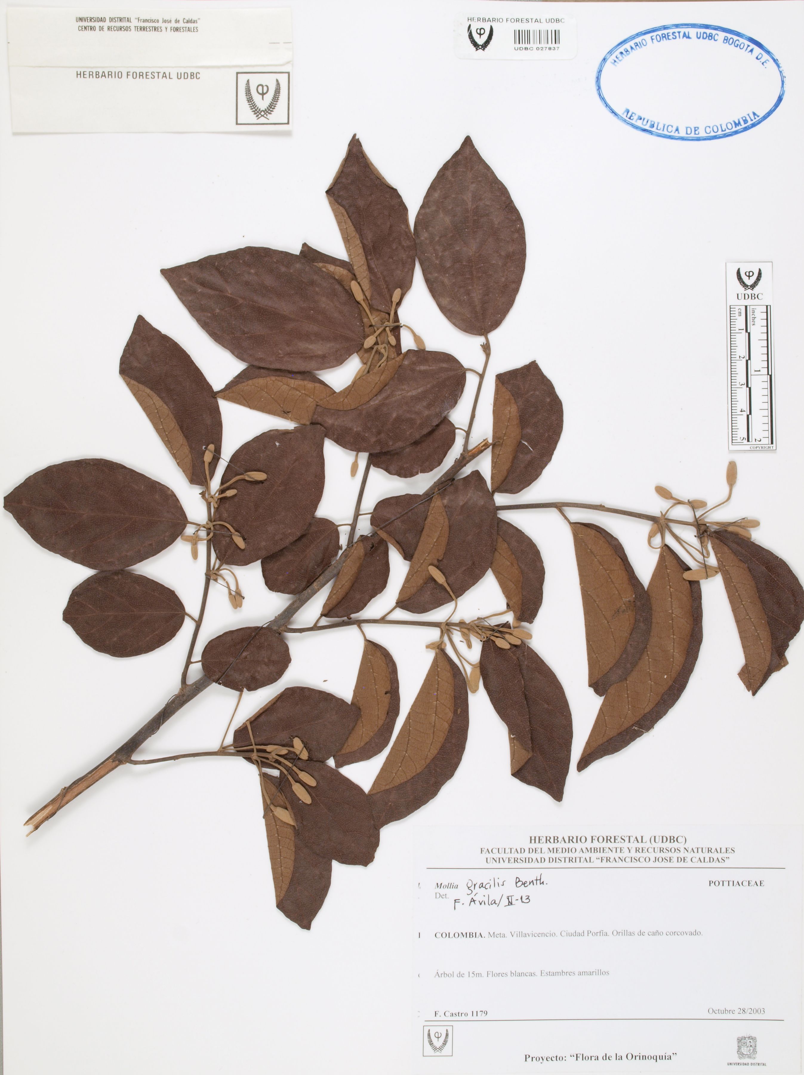 Fotografía del ejemplar Castro, F. 1179, determinado como Mollia gracilis en el año 2013