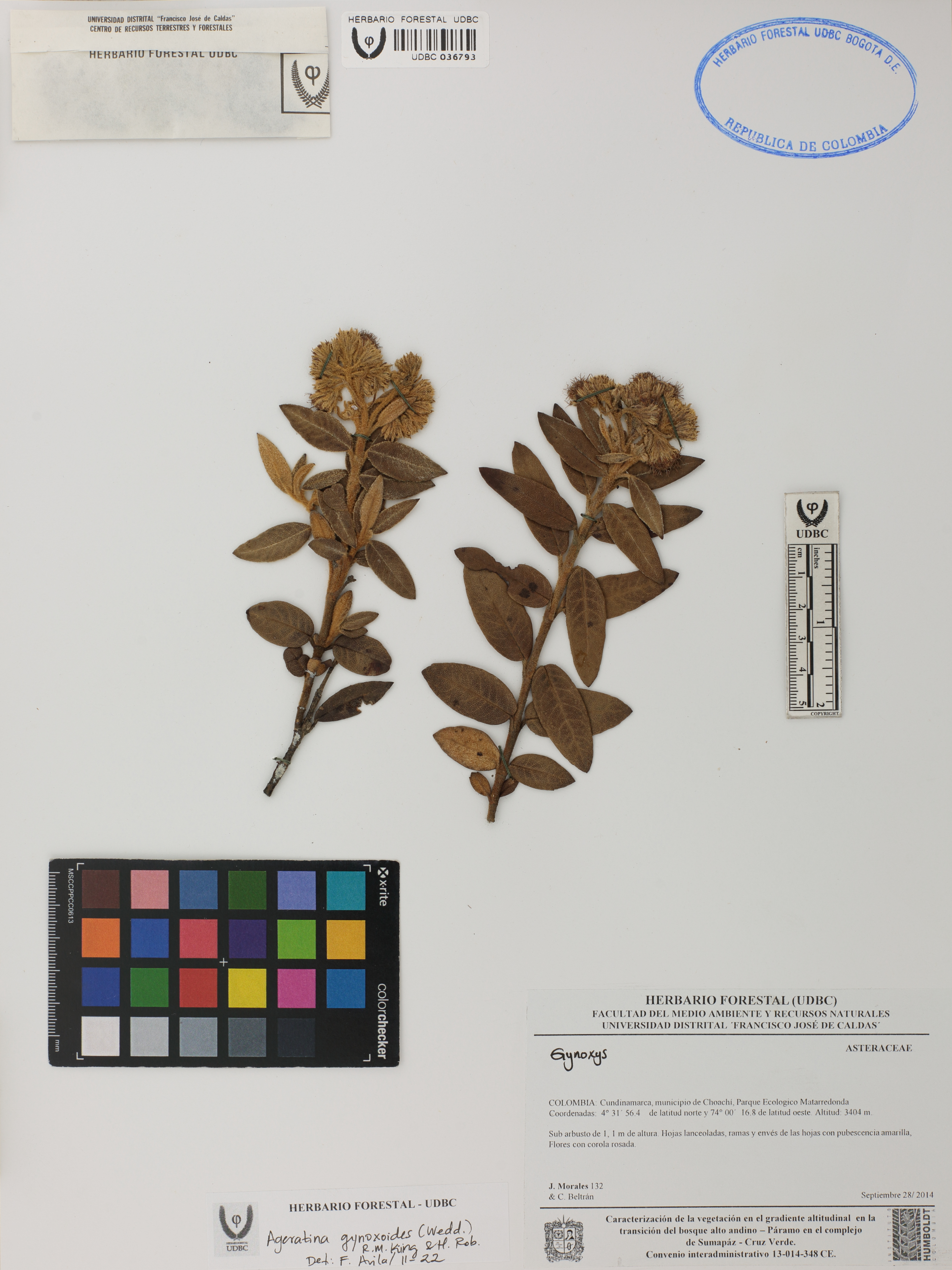 Fotografía del ejemplar Morales, J. 132, determinado como Ageratina gynoxoides en el año 2022