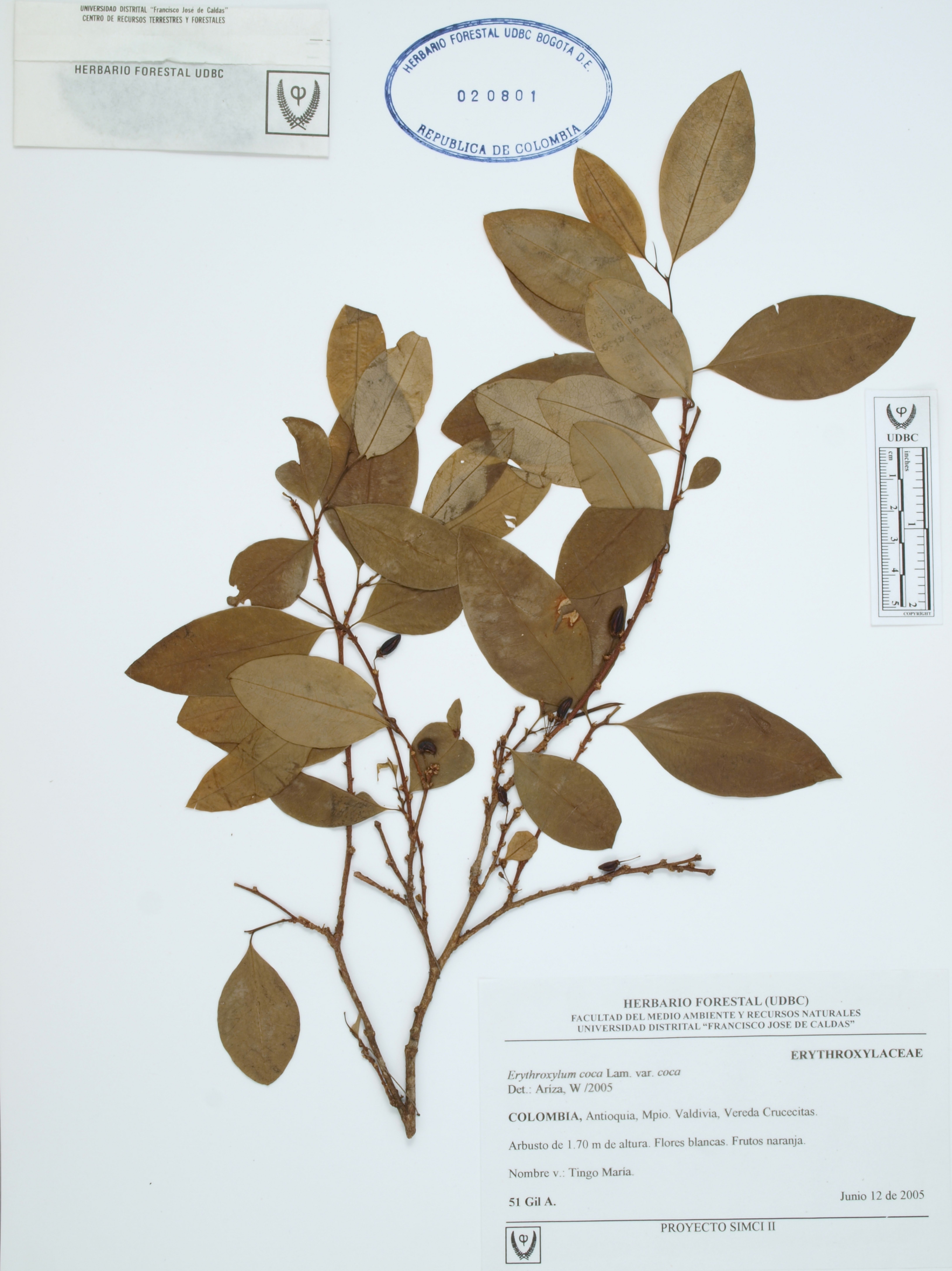 | dc.description | Fotografía del ejemplar Gil, A. 5, determinado como Erythroxylum coca var. coca en el año 2005 | |