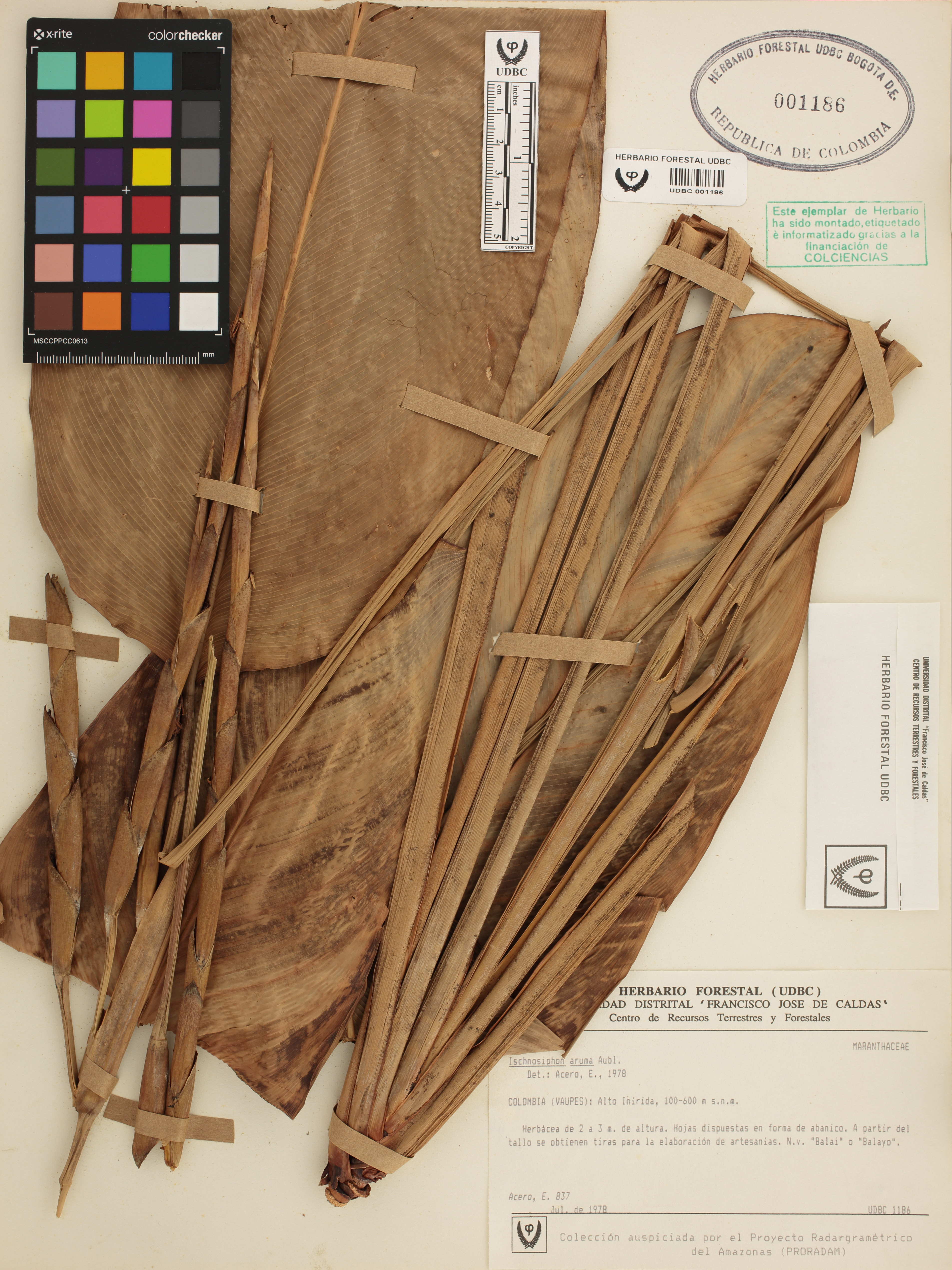 | dc.description | Fotografía del ejemplar Acero, E. 837, determinado como Ischnosiphon arouma en el año 1978 | |
