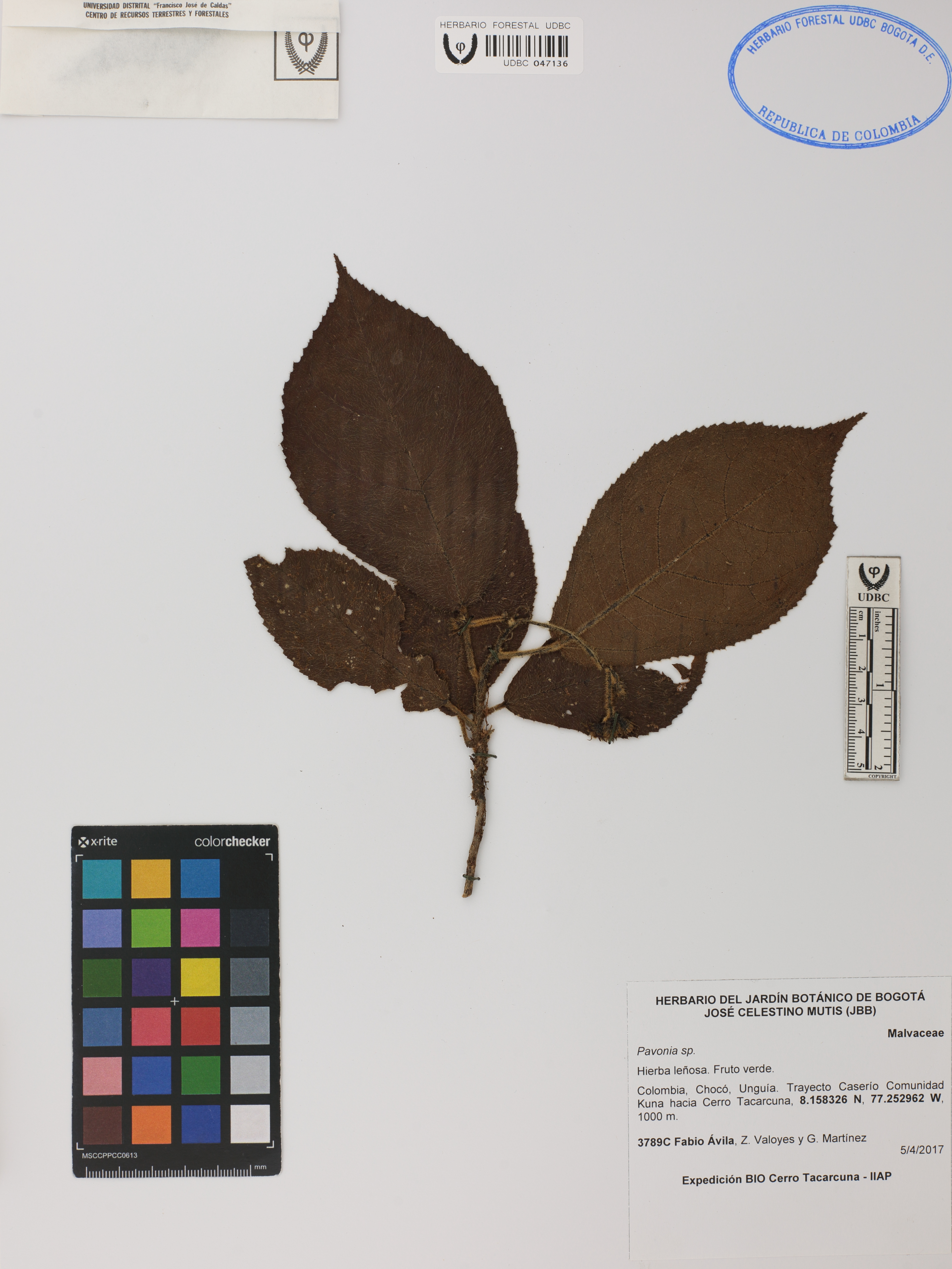 Fotografía del ejemplar Ávila, F. 3789C, determinado como Pavonia sp.