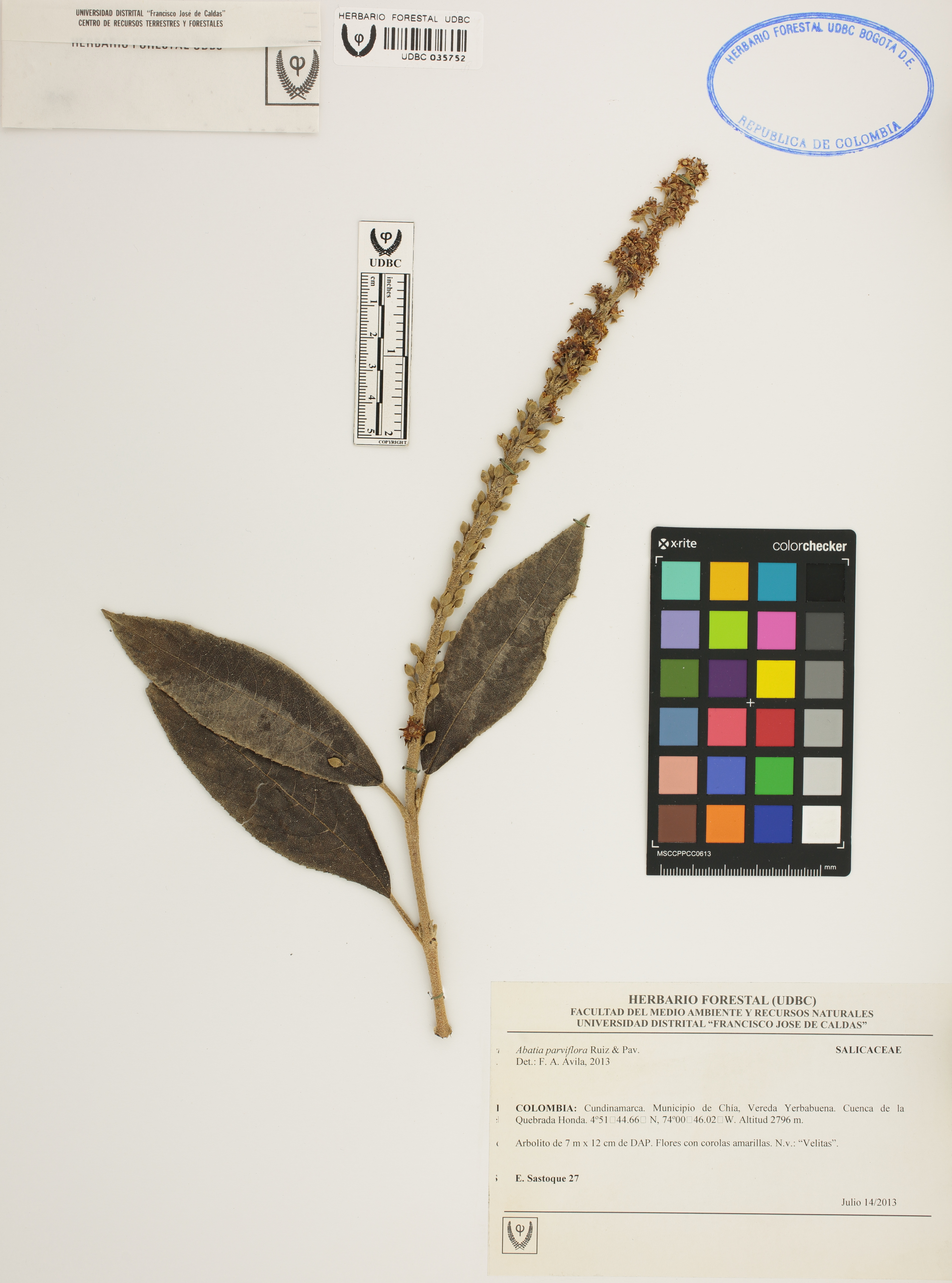 | dc.description | Fotografía del ejemplar Sastoque, E. 27, determinado como Abatia parviflora en el año 2013 | |