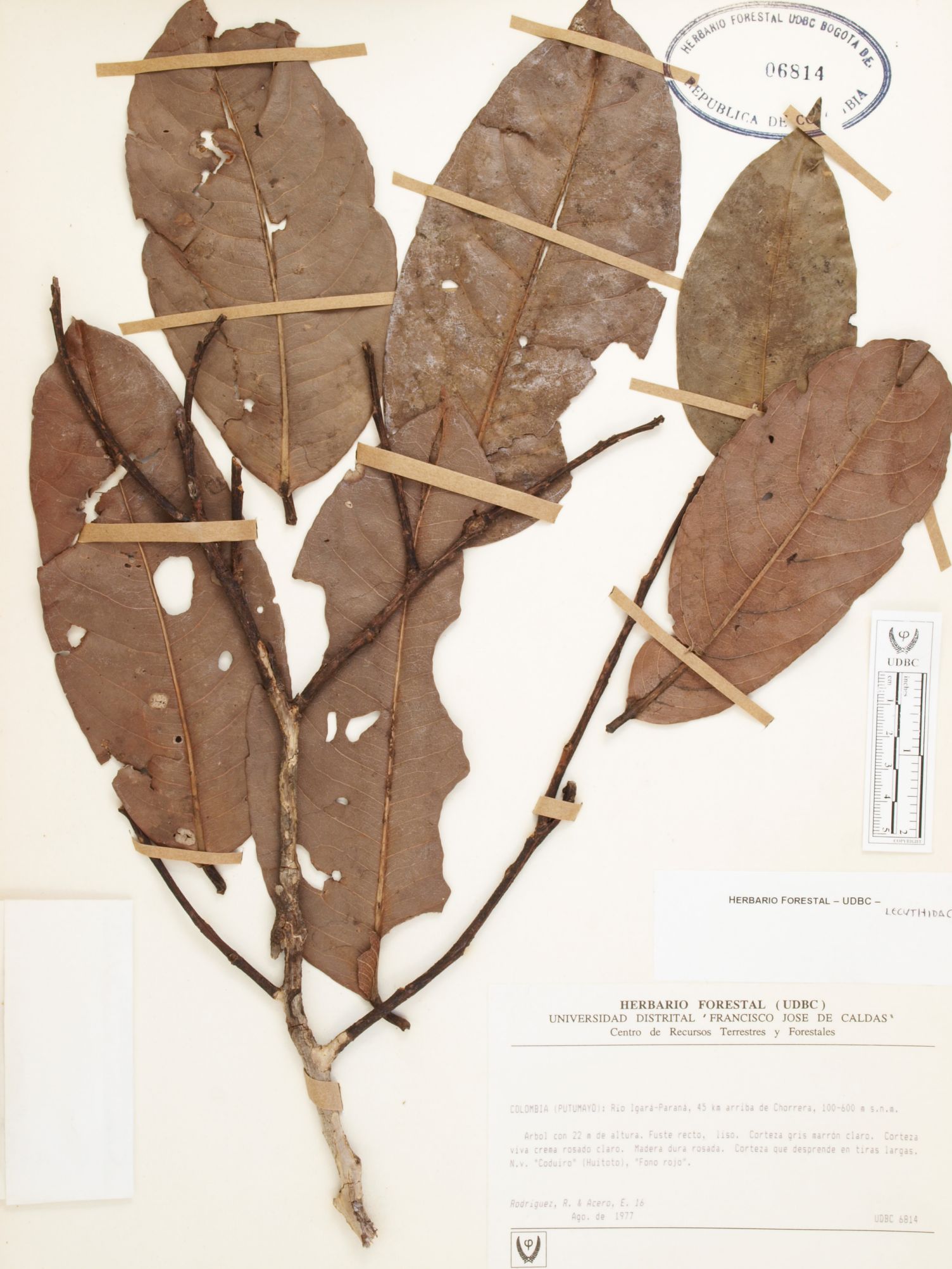 Fotografía del ejemplar Rodríguez, R. 16, determinado como Eschweilera sp. en el año 2009