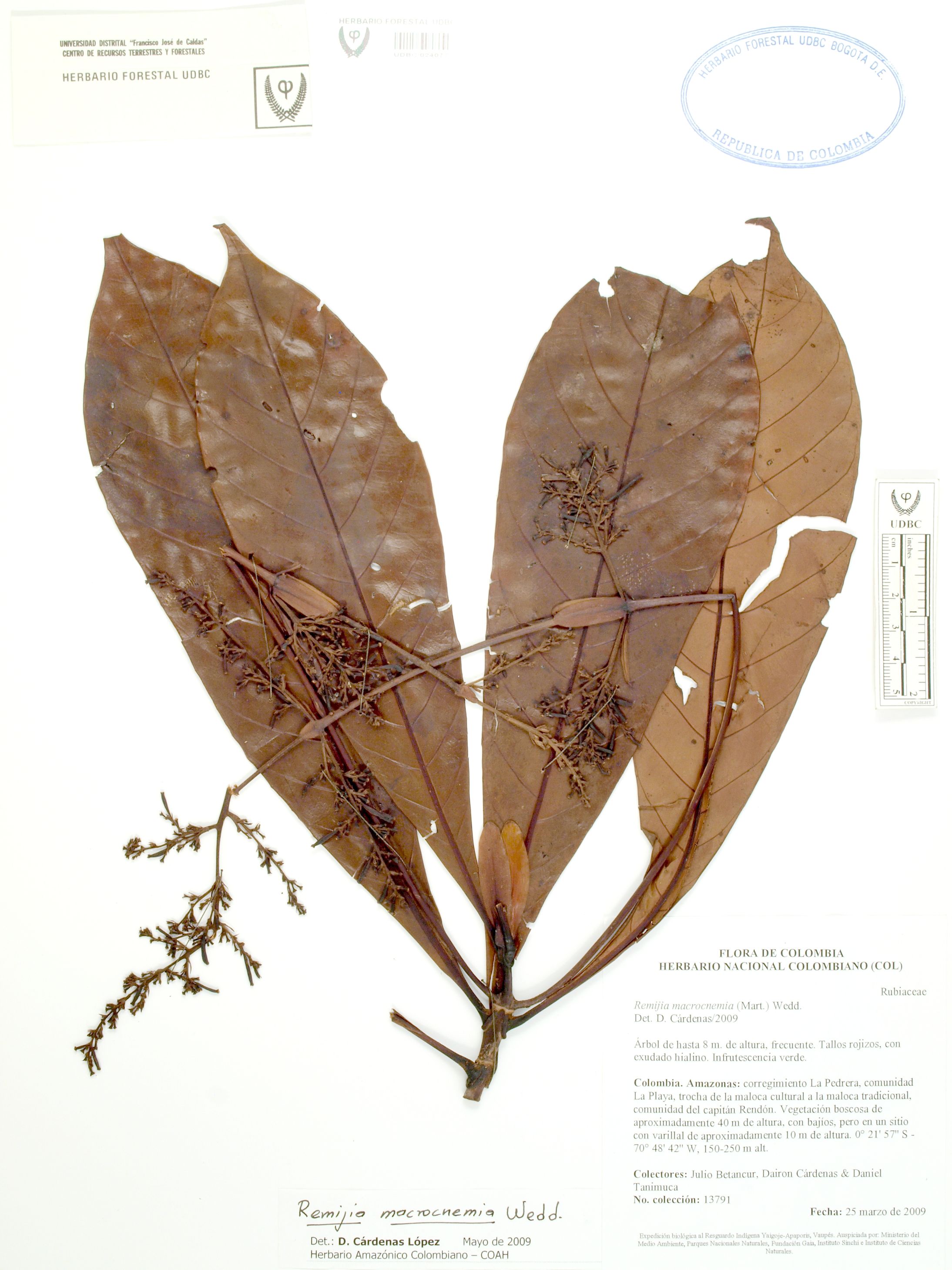 | dc.description | Fotografía del ejemplar SD 13791, determinado como Remijia macrocnemia en el año 2009 | |
