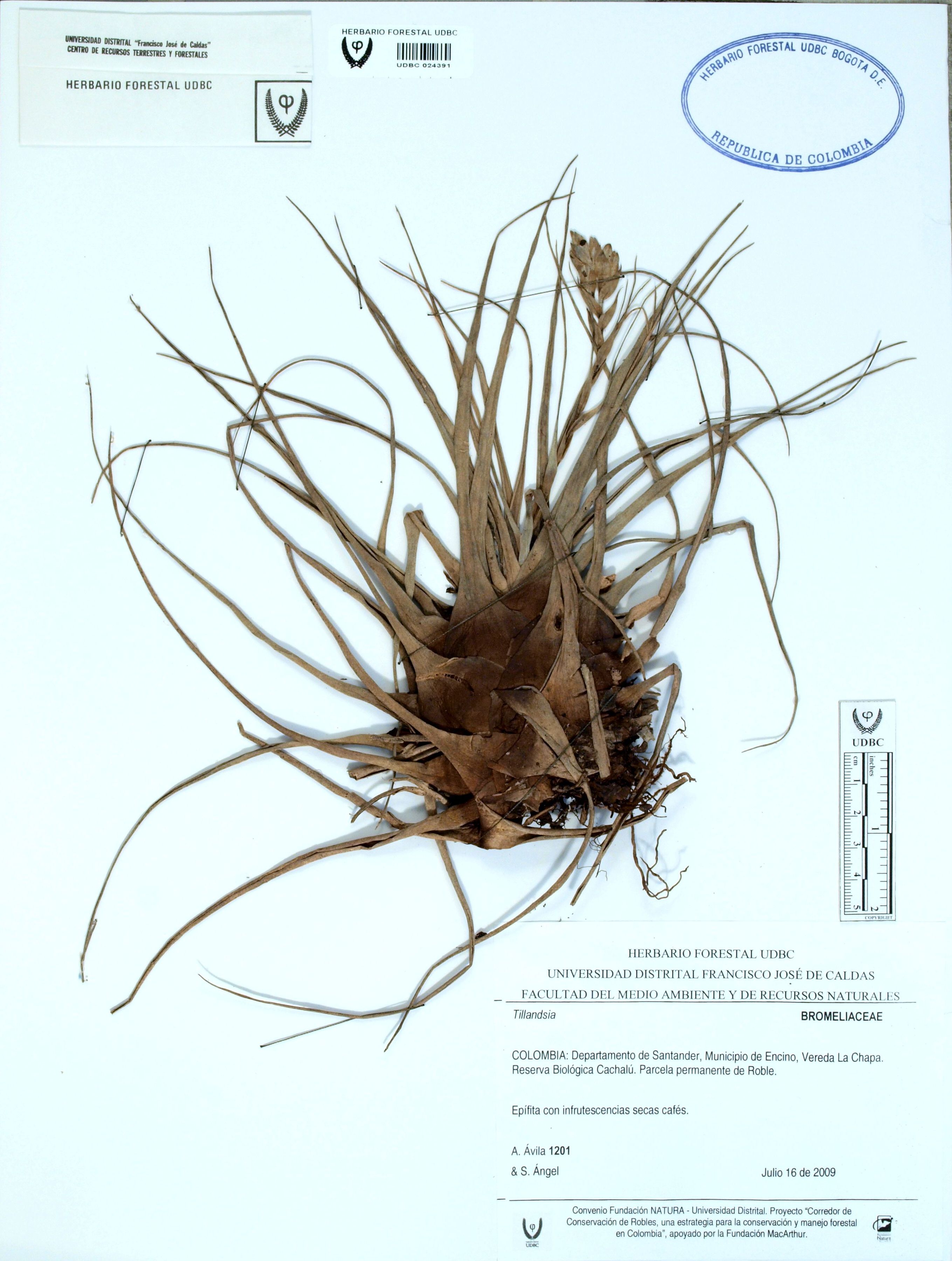 Fotografía del ejemplar Ávila, A. 1201, determinado como Tillandsia sp.