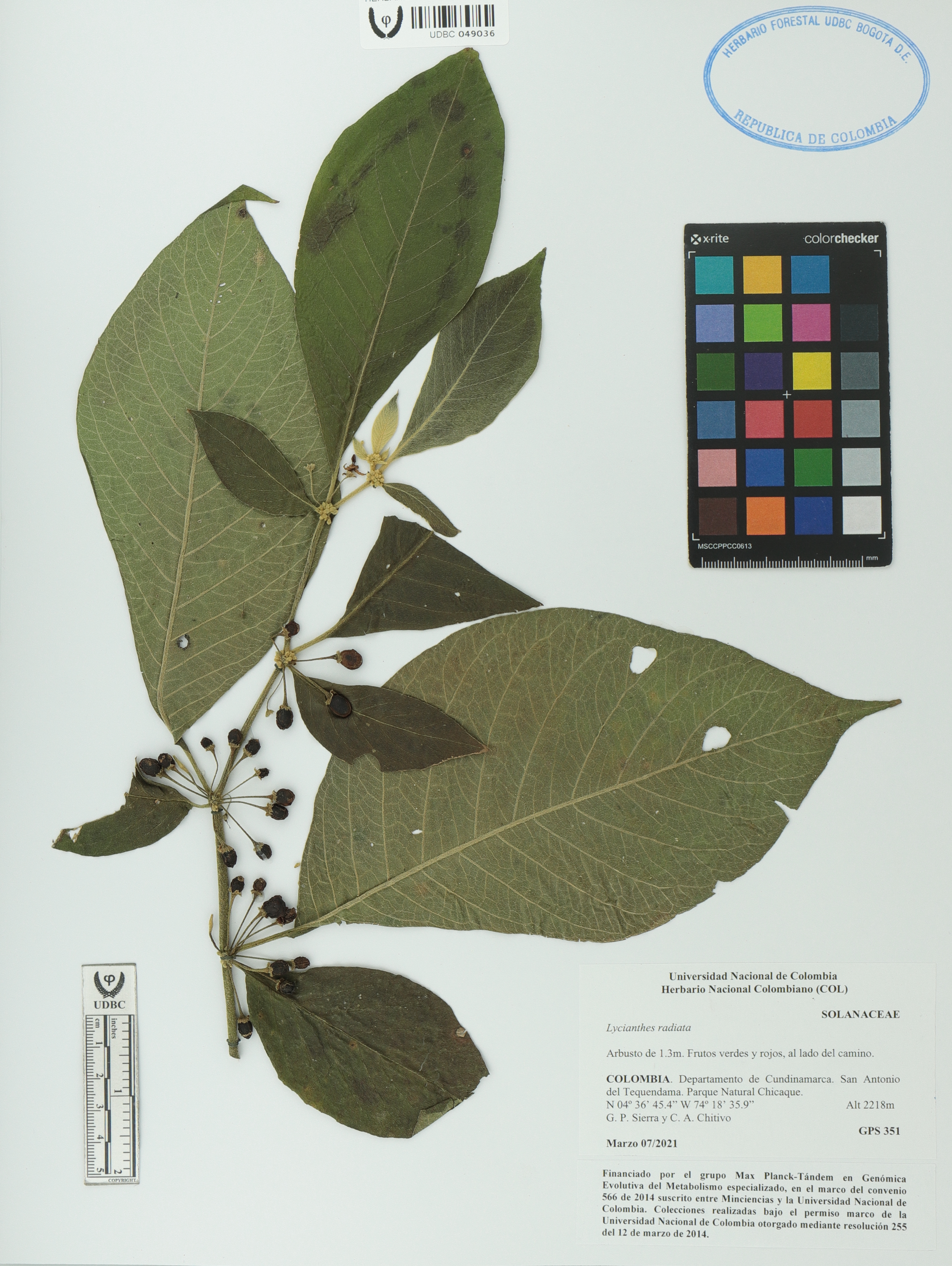 Fotografía del ejemplar Sierra, G. 351, determinado como Lycianthes radiata
