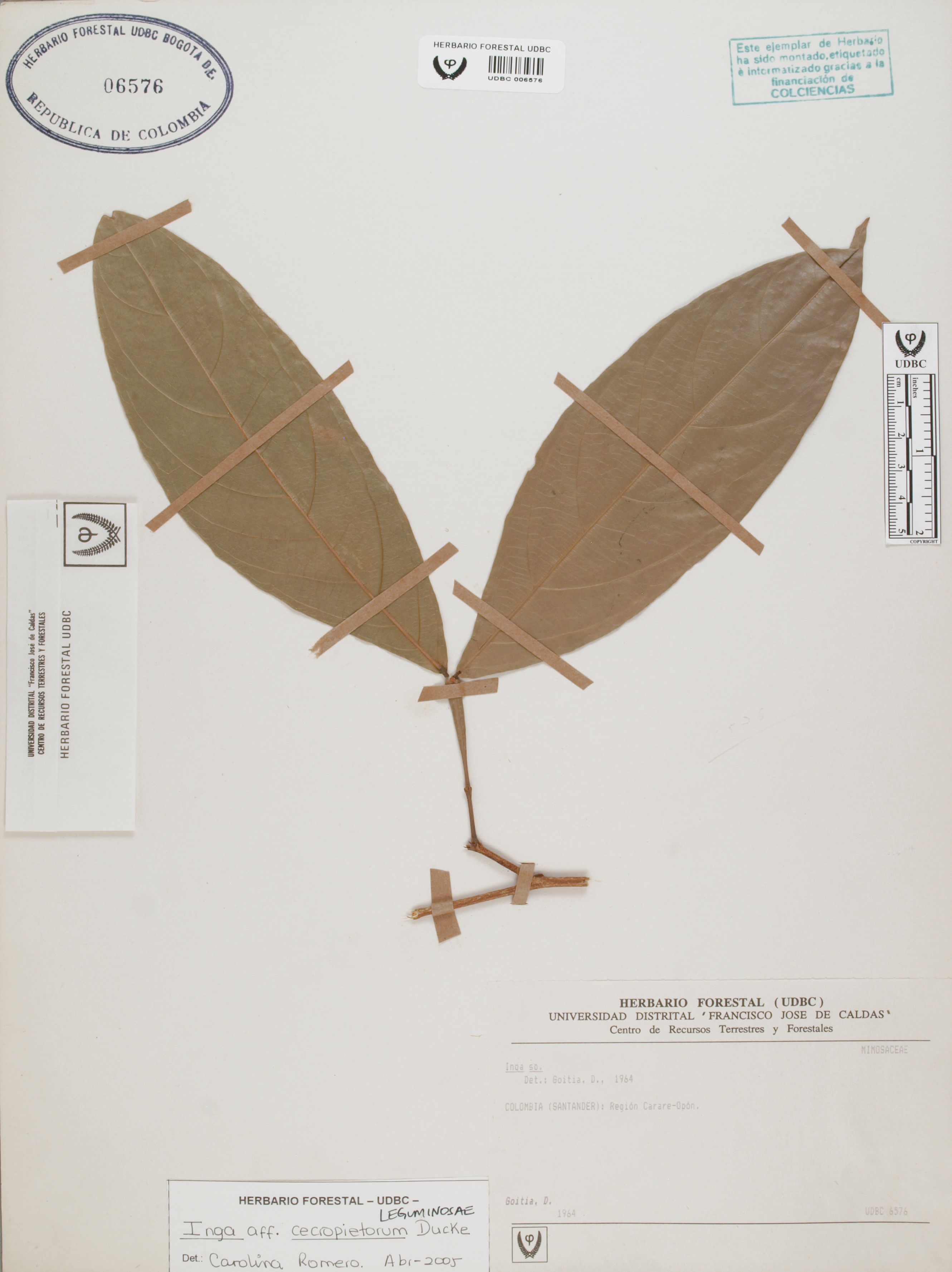 Fotografía del ejemplar Goitia, D., determinado como Inga cecropietorum en el año 2005